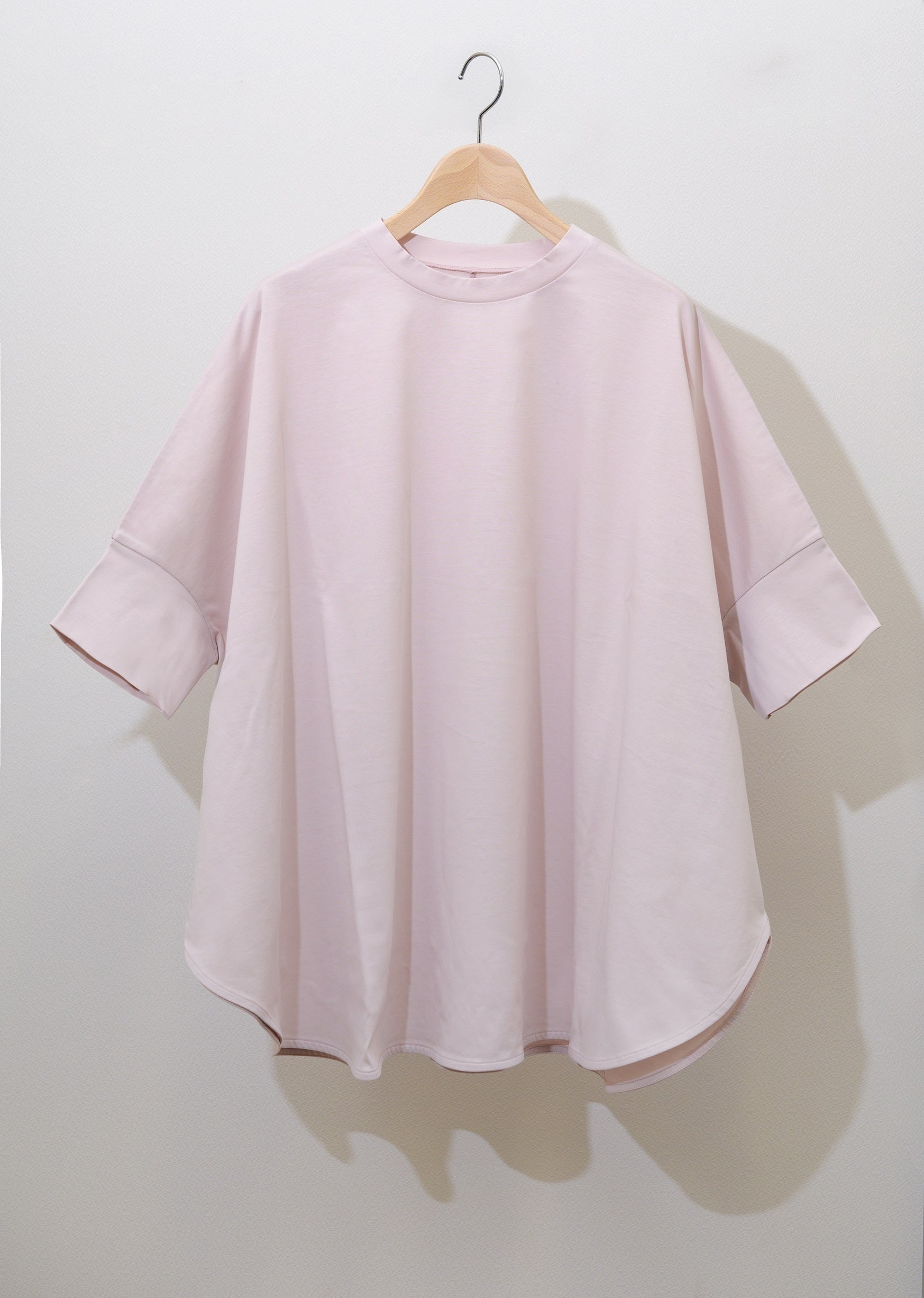 着るだけでお洒落見えするポンチョ型のデザイントップス。ゆったりしたサイズ感と、肌ざわりがひんやりと感じる接触冷感がポイント。真夏まで涼しく着られます。