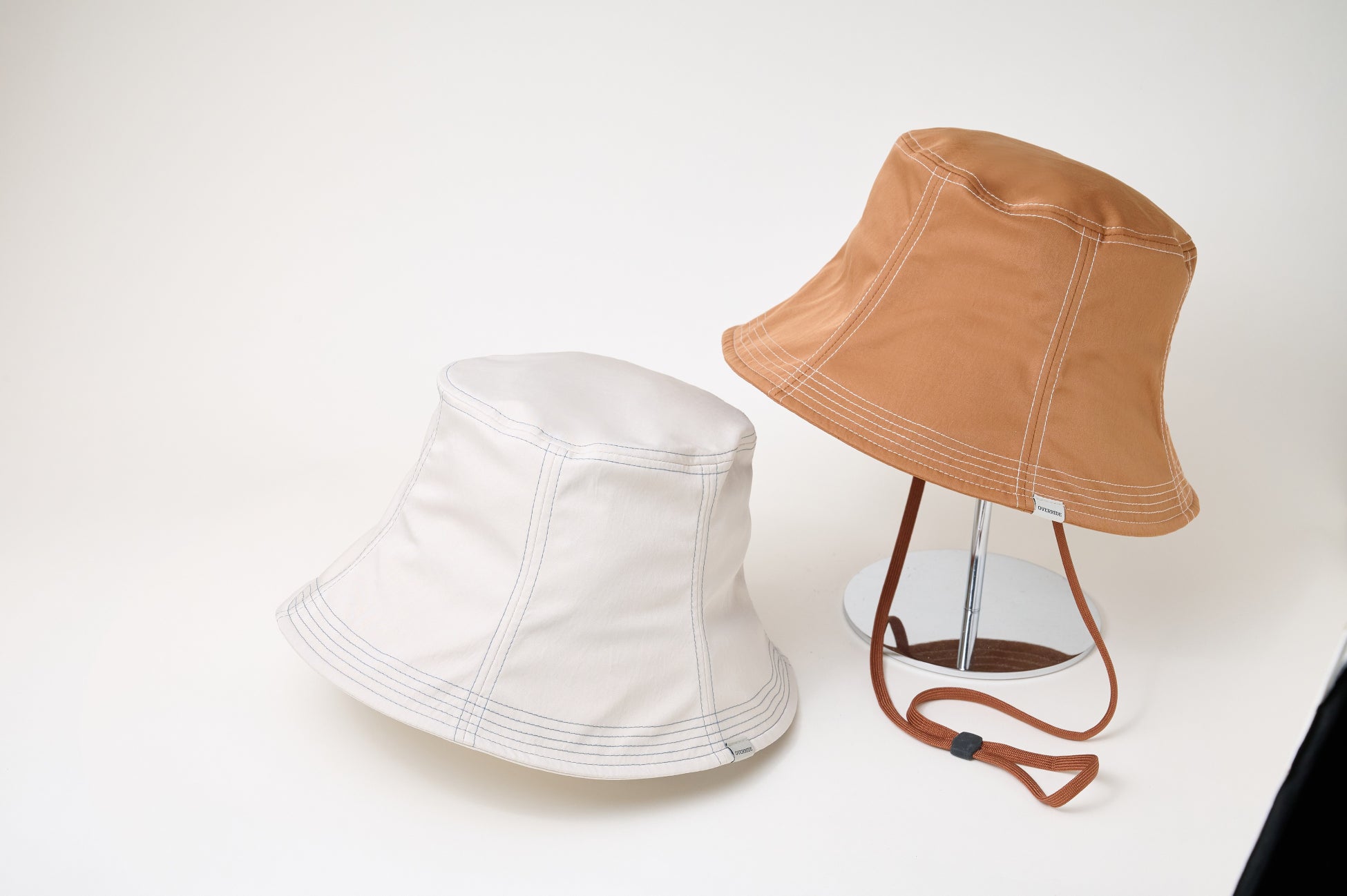 ポリエステル/複合素材混ツイルを使用した平天チューリップハット。キレイめからカジュアルまで幅広く対応可能な素材感。表面はUVカット、花粉対策加工、環境配慮した撥水加工剤を使用。手洗い可で一年を通して旅行やアウトドアにも活躍するお品です。