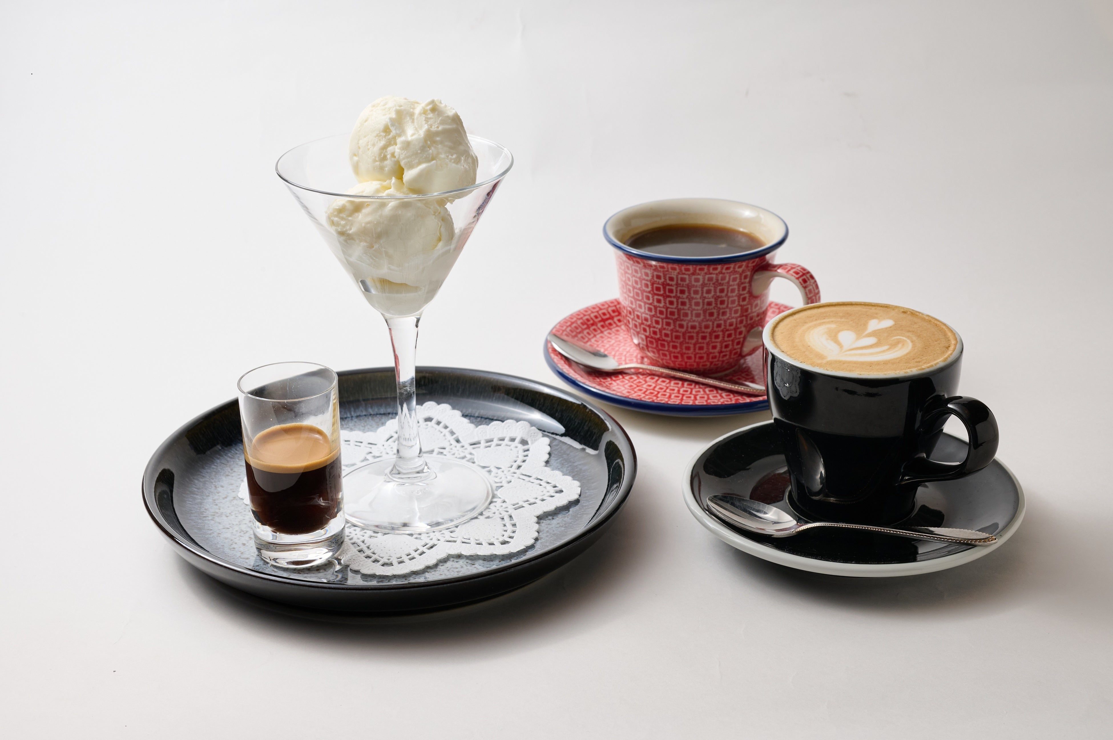 サザコーヒーが本気で作ったジェラートにエチオピア品評会入賞豆のエスプレッソをかけて召し上がっていただきます。同じ豆を使用したアメリカーノかカプチーノをセットで。
