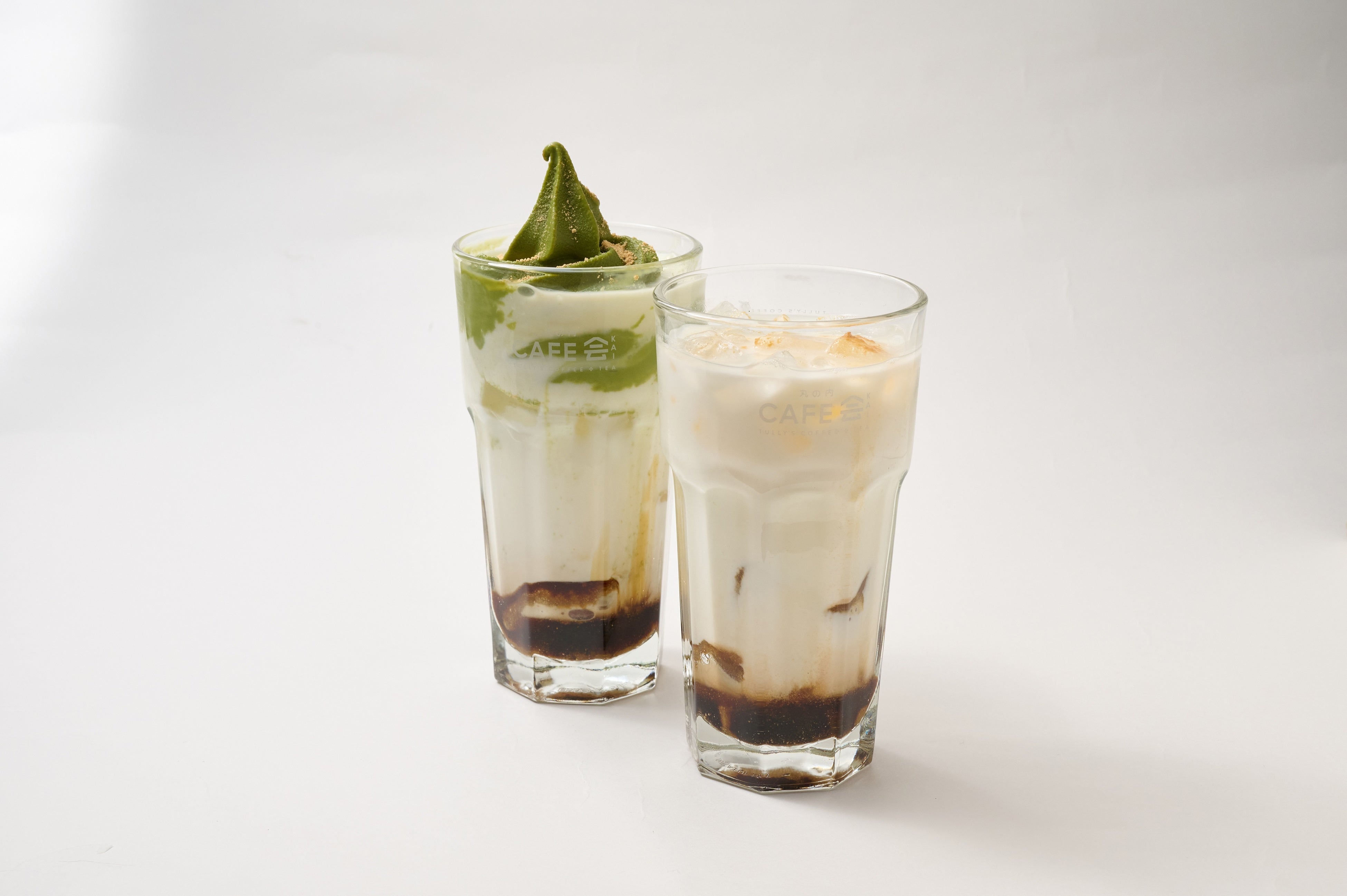 日本の伝統食品である「わらび餅、黒みつ、きな粉」を使用し、とろりと柔らかなわらび餅を黒みつベースのラテに合わせ、仕上げにきな粉をトッピングしています。お好みでソフトクリームをトッピングしたフロートでもお楽しみいただけます。