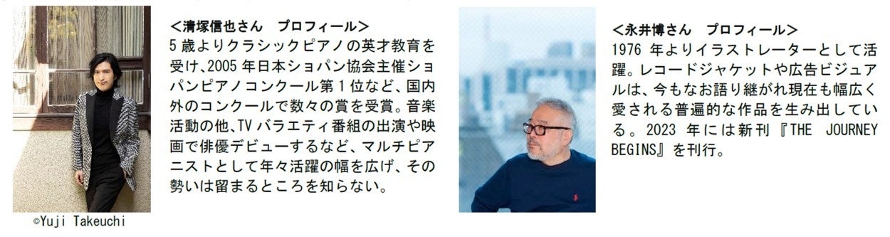 「にっぽんらしさと、あたらしさを。」を施設コンセプトとするJPタワー商業施設「KITTE」は、日本郵便株式会社が初めて手掛ける商業施設として、2013年に東京・丸の内に開業しました。開業から10周年を迎える 今年のテーマは「音楽とアートによるおもてなし」。これまで「人と人、街と街、時代と時代」を結んできたKITTE。創作活動を通して「人と人・心と心」をつなぐアーティストであるピアニストの清塚信也さんとイラストレーターの永井博さんとともに、年間を通して「音楽とアートによるおもてなし」を展開します。