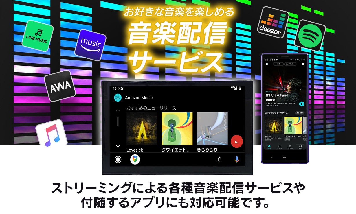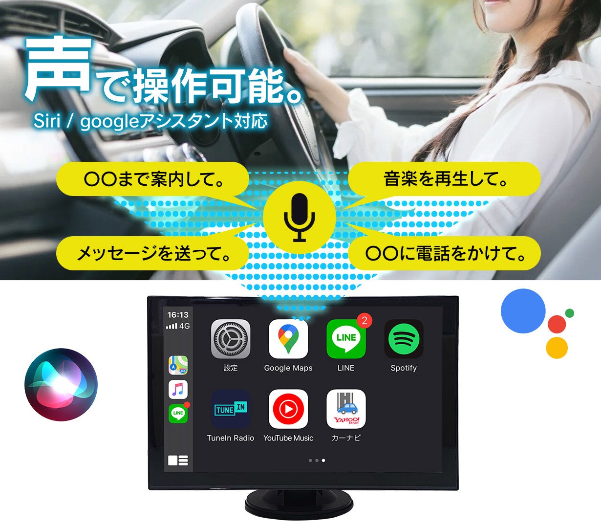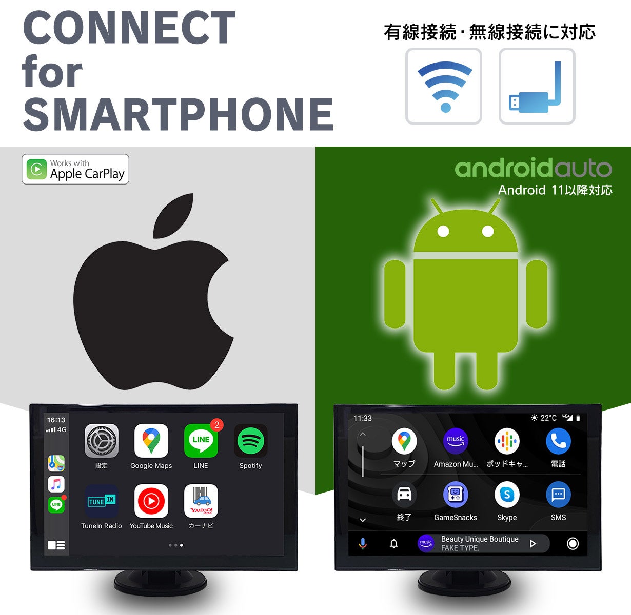 Android Auto、Car Play対応のスマートフォンから無線で接続可能。大画面・高機能・低価格を実現しました。