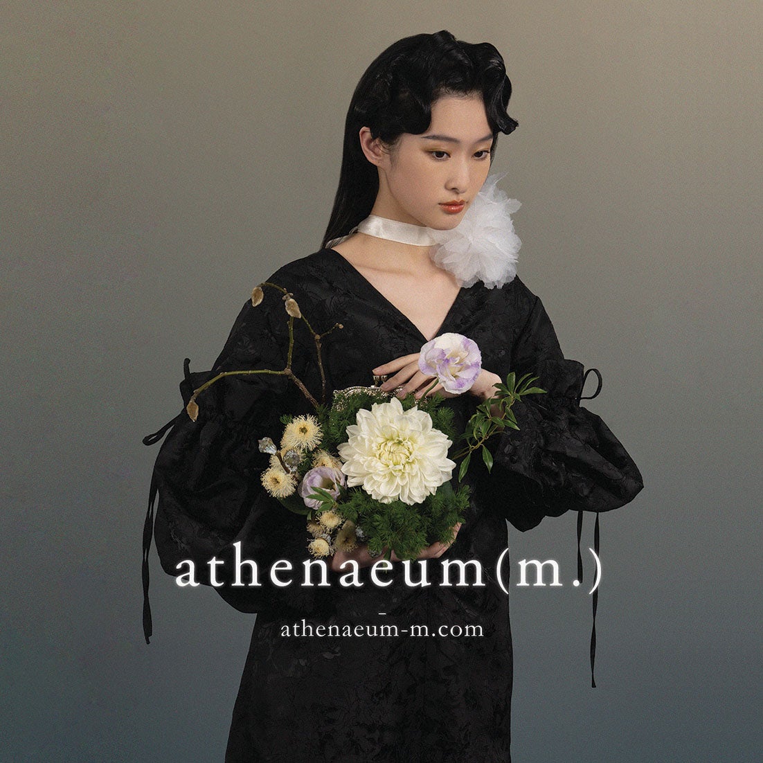 芸術と文化の狭間でロマンスを創造するathenaeum(m.)は、洗練されたエレガンスと歴史的な要素に華やかさを加え、モダンなアプローチで優雅に融合。フェミニンなシルエットは、透け感のあるテキスタイルと不透明なテキスタイルを重ねることで生まれる光と影によって表現されています。現代女性のためのカプセル・ワードローブを提案し、日常生活の中でロマンと自由を感じられるような、着心地の良い高品質でスタイリッシュな服作りを目指しているブランドです。