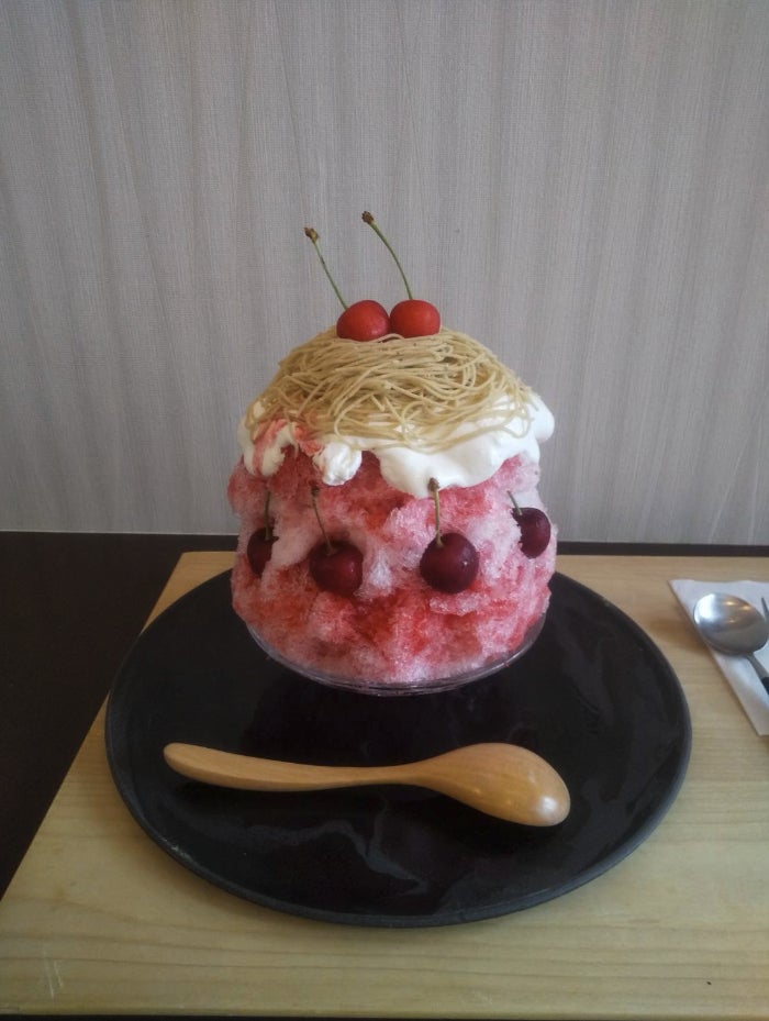 さくらんぼモンブランかき氷は、京都の暑い夏にぴったりな夏季限定モンブランです。丹波栗をふんだんに使ったクリームと上品な味わいのさくらんぼを、爽やかにまとめ上げるフワフワかき氷と合わせました。口の中で広がる和栗の香りを心ゆくまでお楽しみください。