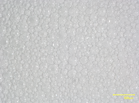 加水分解水添デンプンを使用した泡は約250μm以下のものが多く、泡のキメ細かさが確認された。一方で加水分解水添デンプンを無添加の泡は約250μm以上の大きな泡が多く、また1つ1つの泡の大きさが異なっていた。
