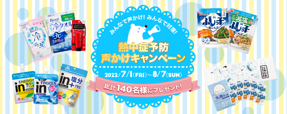 また、「熱中症予防声かけ出陣式2022」の開催に合わせて、暑さ対策グッズが当たるキャンペーンを実施します。キャンペーンをきっかけに、より多くの国民の皆さまへ、熱中症予防を呼びかけます。(キャンペーンURL: https://www.hitosuzumi.jp/campaign2022/)