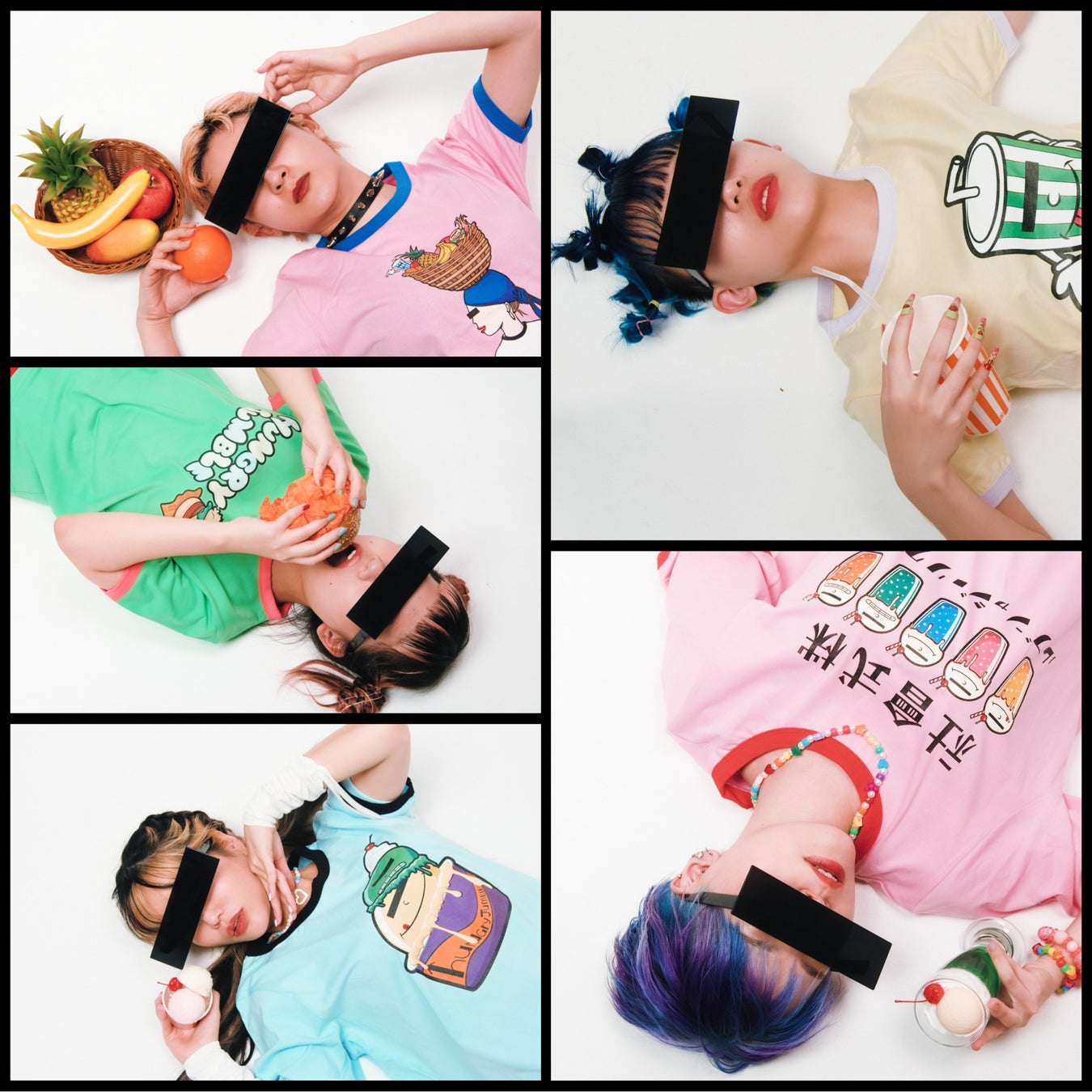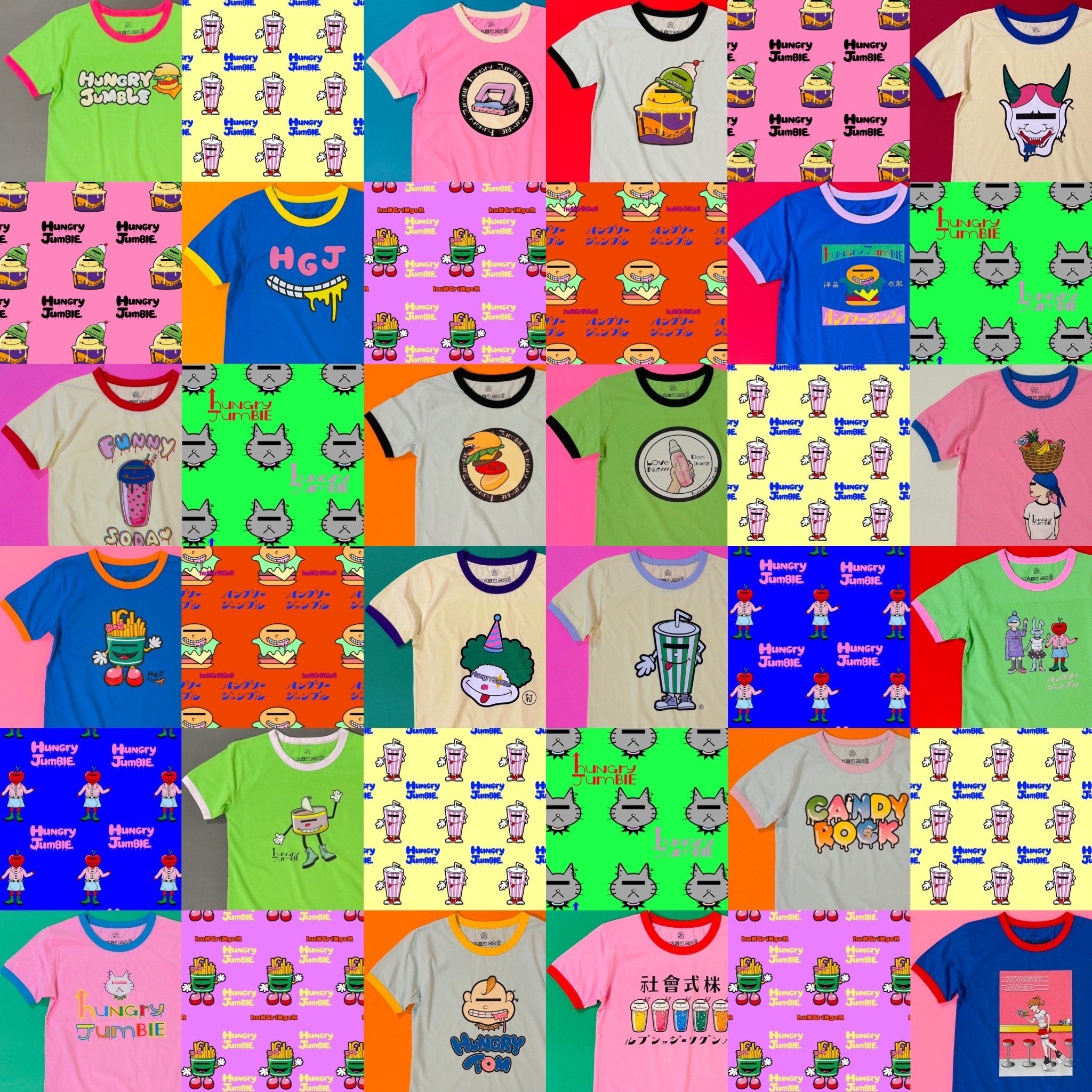 huNGry JumBlE カラフルなオリジナルリンガーTシャツ“huNGriNGeR” 20 種類を同時販売。好きなカラーのリンガーTeeとプリントデザインを選べるカスタマイズも可能