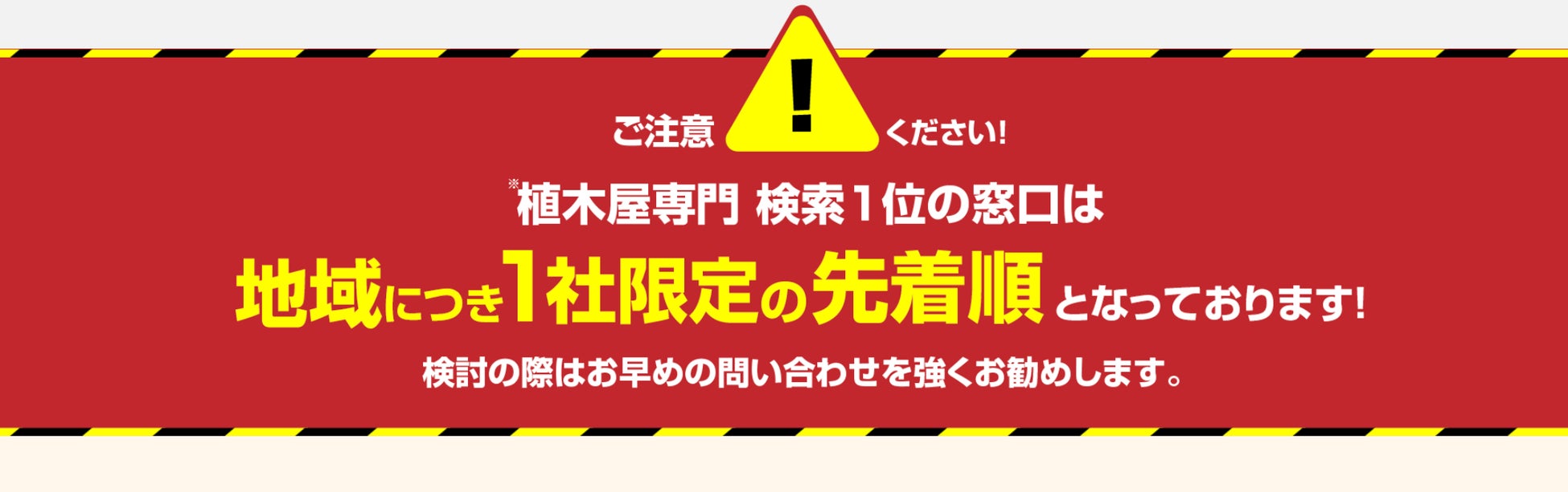 植木屋専門 検索1位の窓口サービス開始に伴い、限定で初月無料のご契約を2社限定でご案内致します。