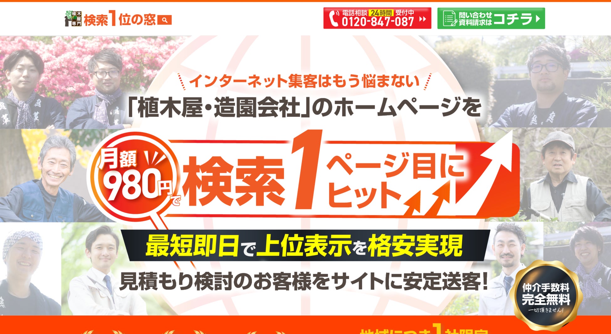 本サービス「植木屋専門 検索1位の窓口」は、それらの課題を格安で解決致します!