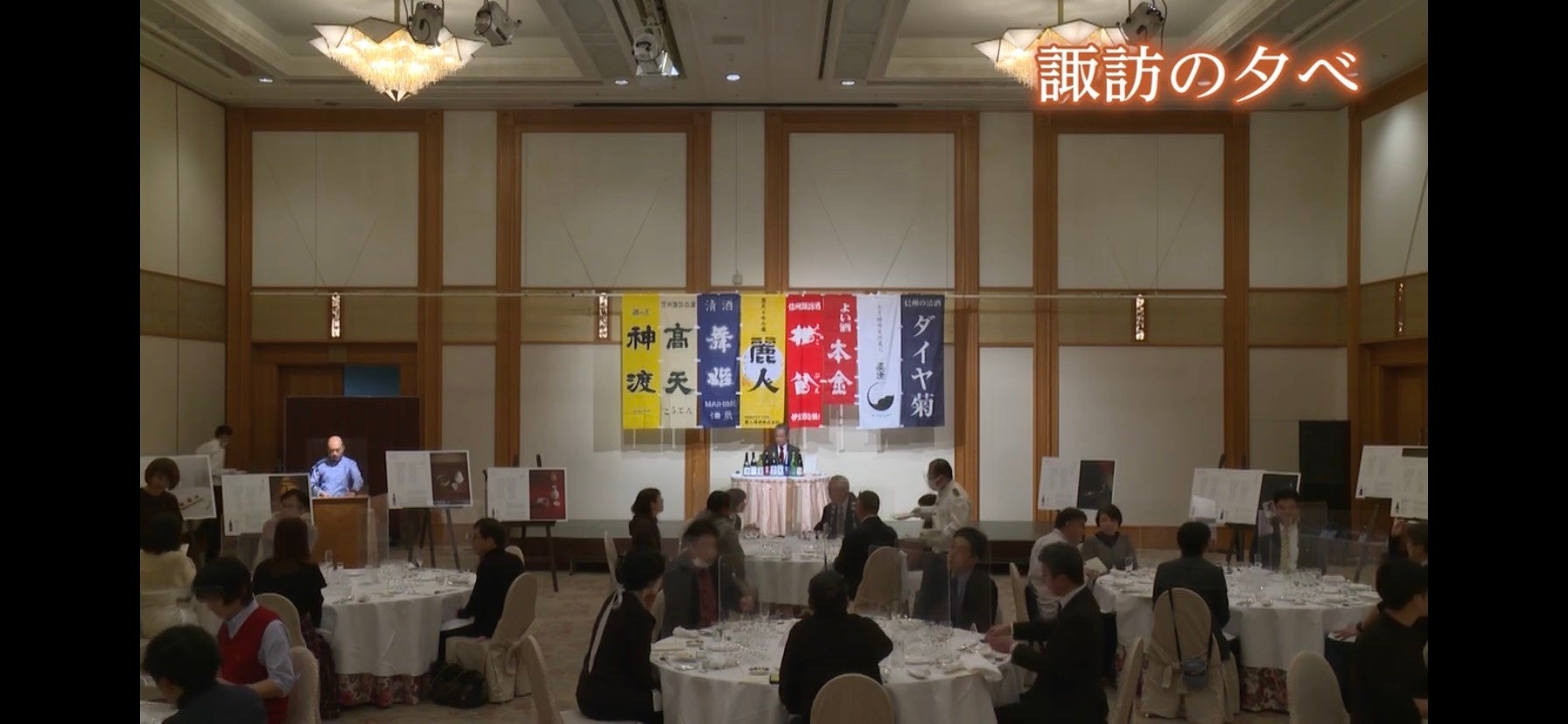 テイスティングブックで紹介されているお酒と料理を、一般消費者に提供するイベント「諏訪の夕べ」を開催しました。長野県でも有数の老舗ホテル「長野ホテル犀北館」にて、ソムリエ・石田陽介の解説とともに日本酒と食事のペアリング9品をコース仕立てで提供。34名が参加し、各蔵のお酒と料理を楽しみました。今回の諏訪の
