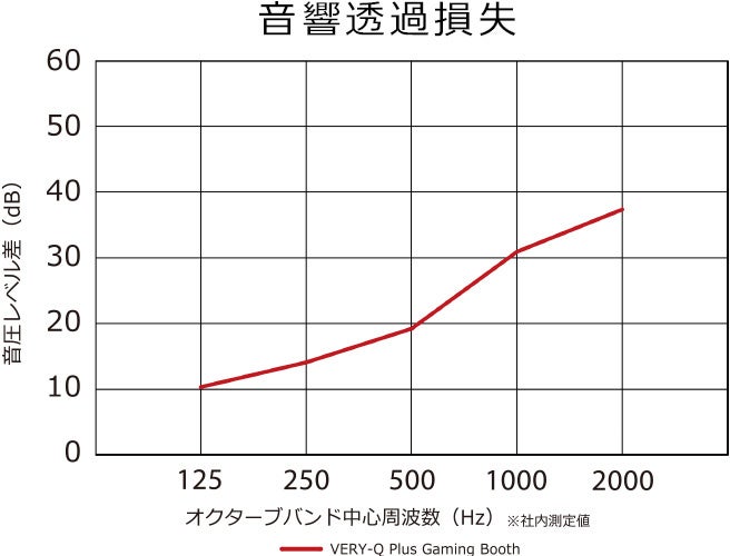「VERY-Q Plus Gaming Booth」は-20dB/500Hzの遮音性能(当社計測基準値)で人の声にあたる周波数帯の遮音をカバーすると同時に、外部からの騒音も軽減します。