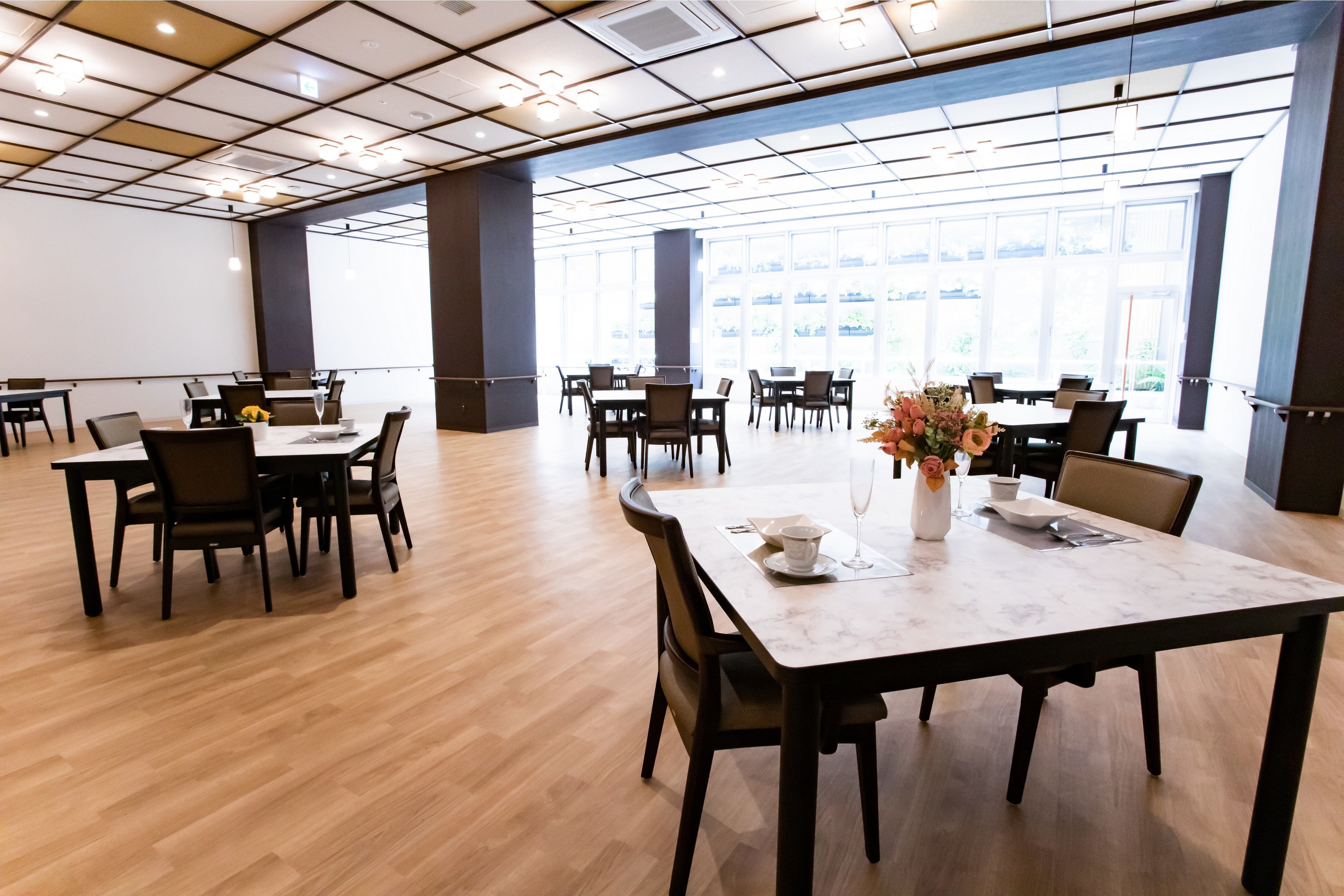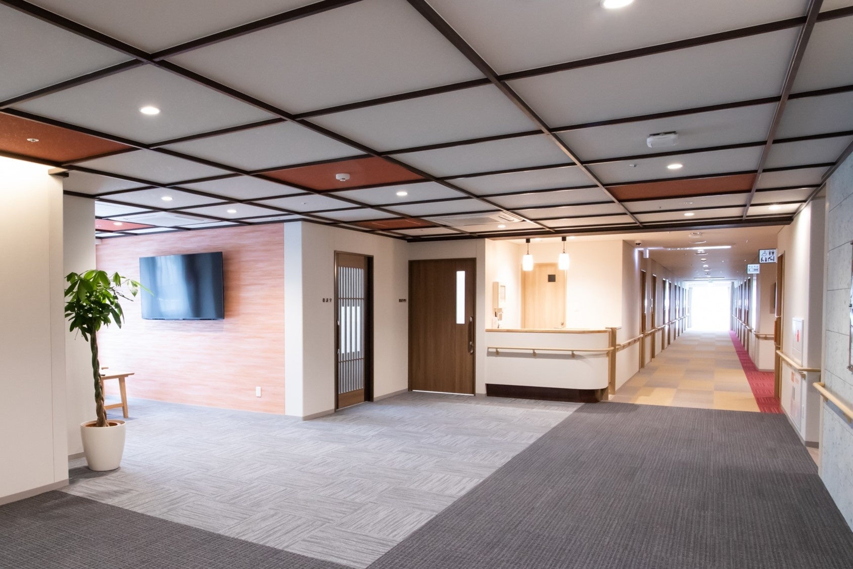 共用部設備:ダイニングコーナー、機能訓練コーナー、一般浴室、機械浴室、脱衣室、洗濯室、健康管理室、相談室、エレベーター、車椅子対応トイレ(オストメイト一部対応あり)、スプリンクラー、他