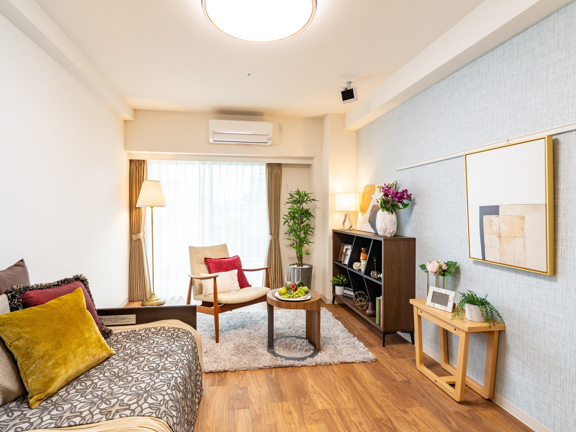 居室設備 :介護用ベッド、エアコン、クローゼット、防災カーテン、洗面台、シャワー付トイレ、ケアコール