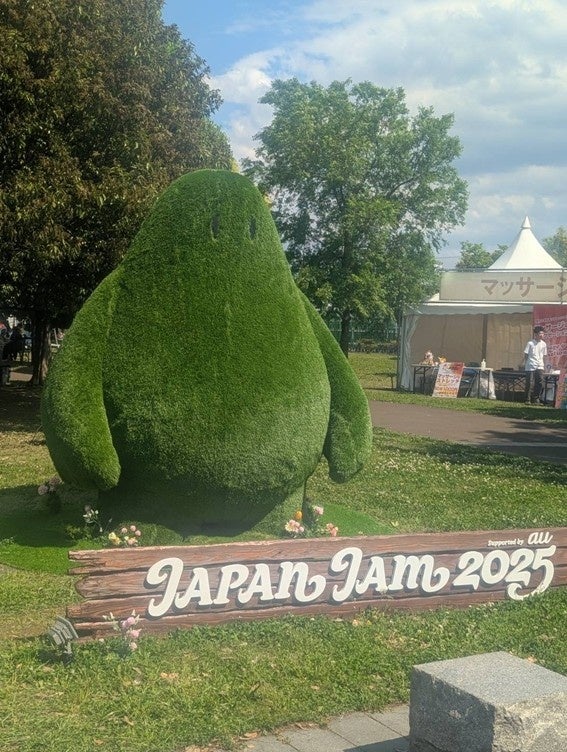 株式会社GreenDesign(本社:東京都世田谷区)は、千葉市蘇我スポーツ公園で2025年4月29日(火・祝)より開催されるGW最大の野外音楽フェス「JAPAN JAM 2025 supported by au(https://japanjam.jp)」にて、高さ2.5mの国内最大級※人工芝マスコット「もじゃむ」を制作いたしました。※当社調べによるものであり、同等以上の事例を否定するものではありません。