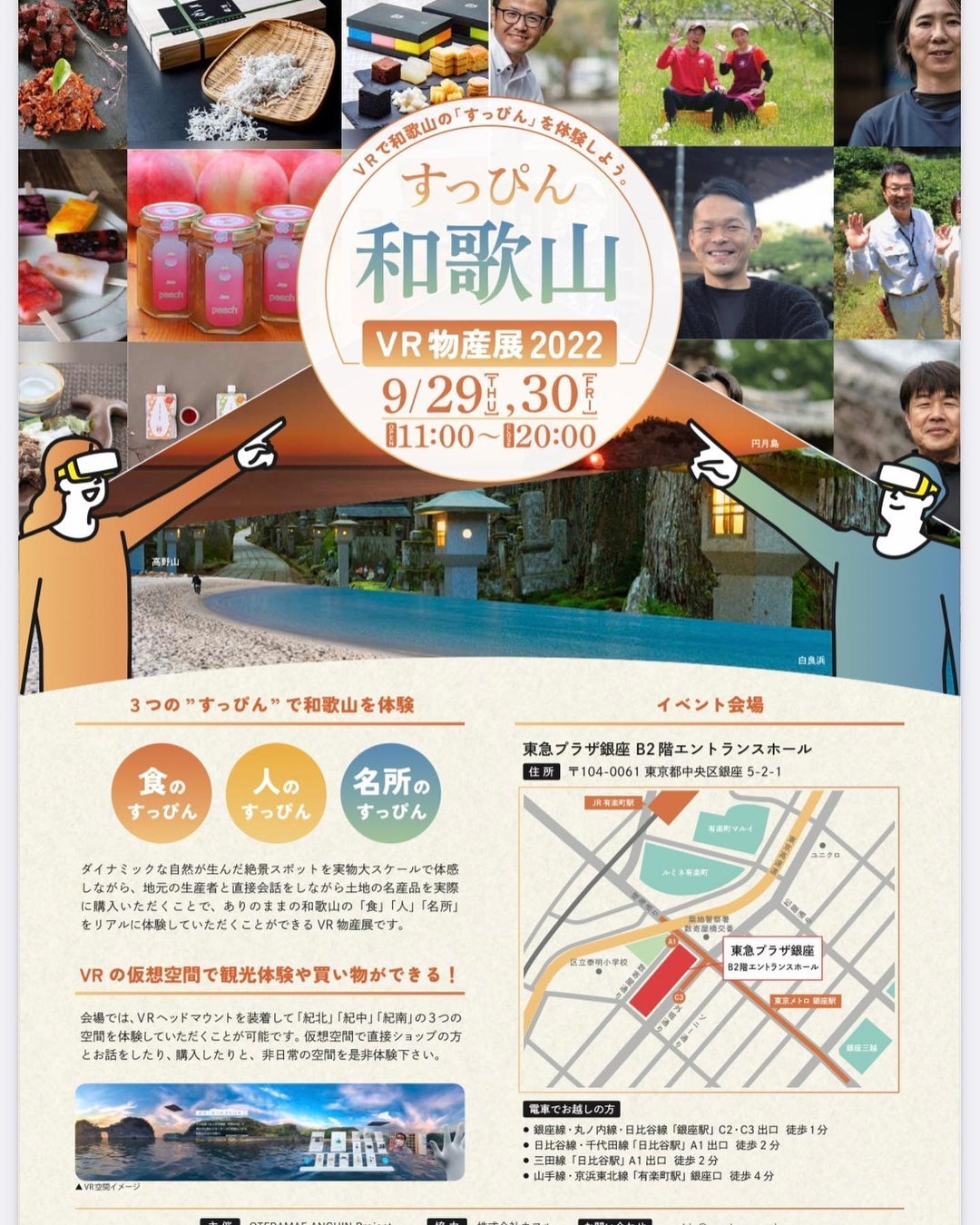 味覚、行楽の「和歌山」を「銀座」と結ぶVR物産展(デモ決算搭載)「すっぴん和歌山」東急プラザ銀座で9月29日、30日開催