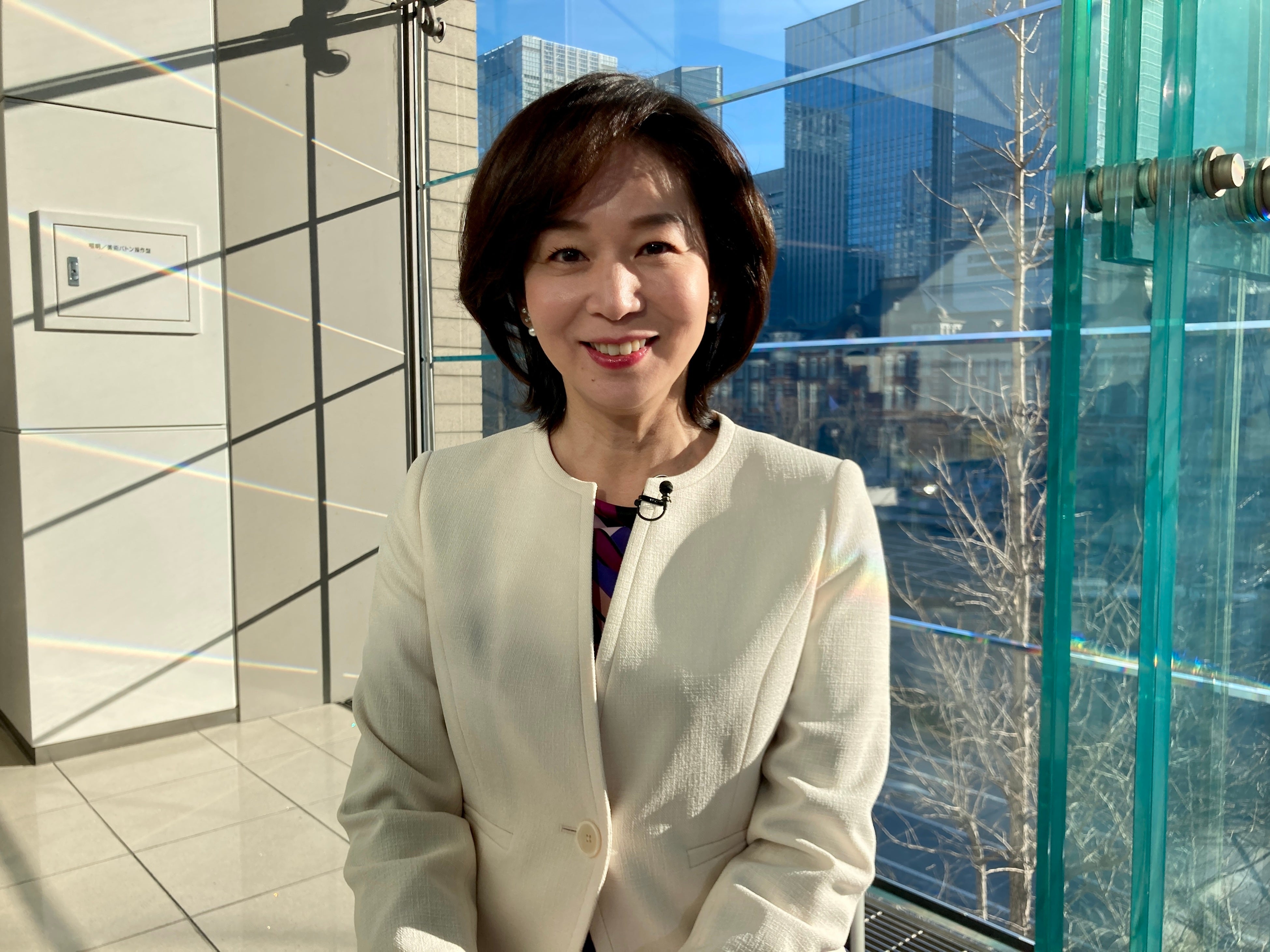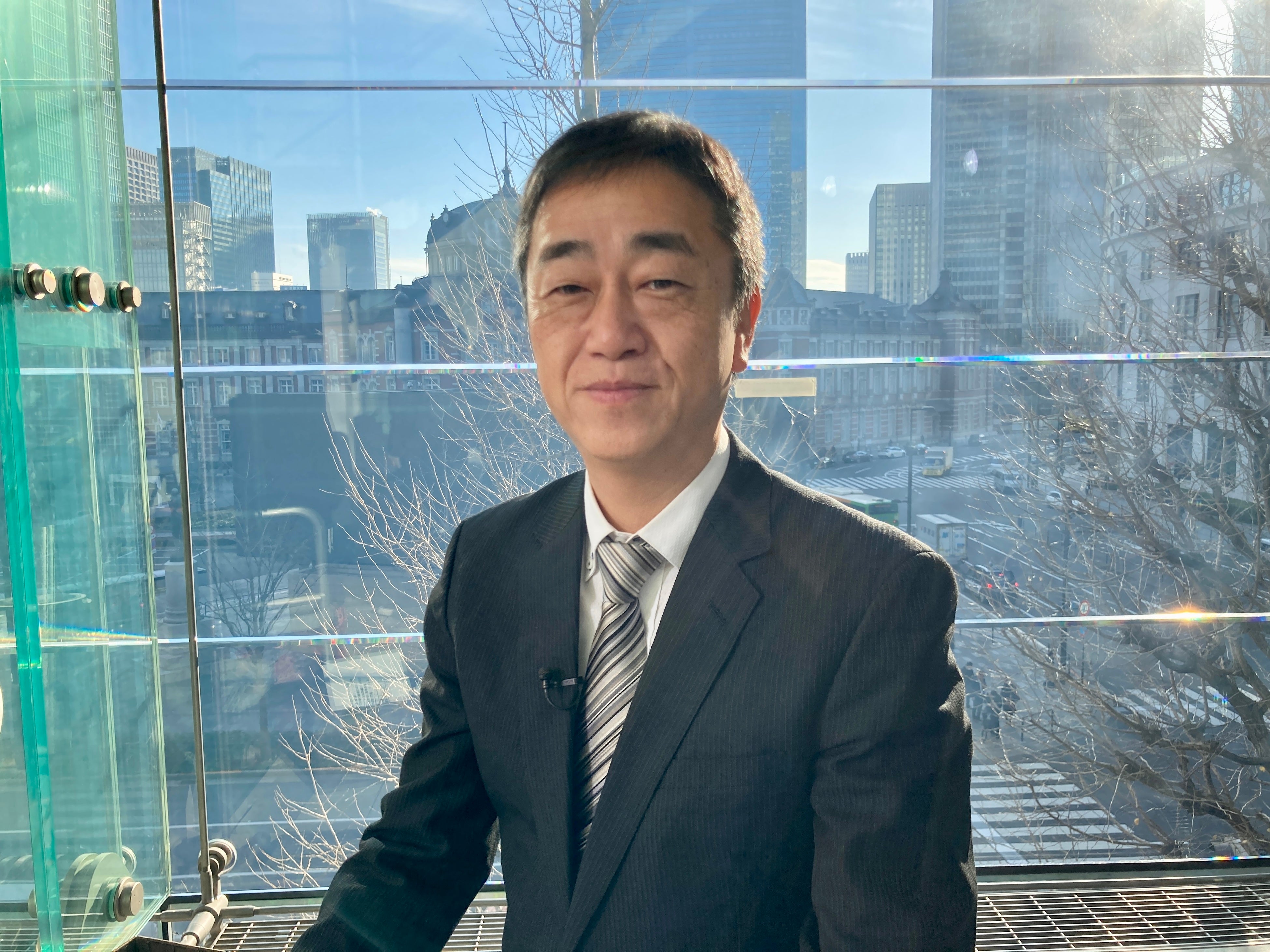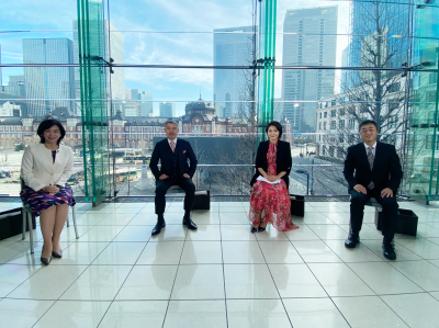 収録は、JR東京駅前の丸ビル3階ロビーにて