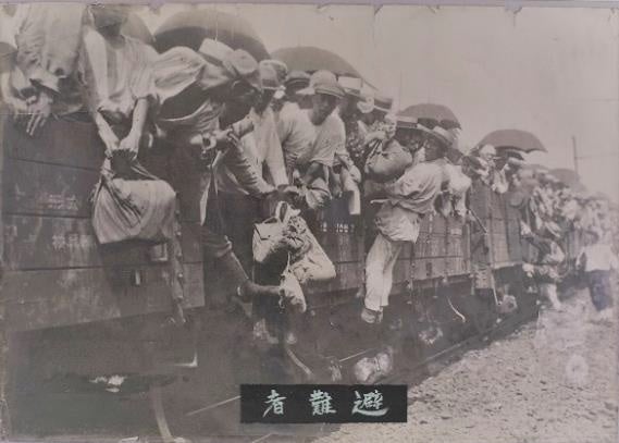 (関東大震災発生後、地方に向かう列車は避難者で溢れた)東京都復興記念館所蔵資料