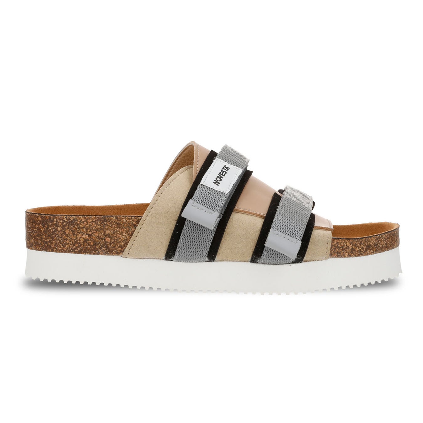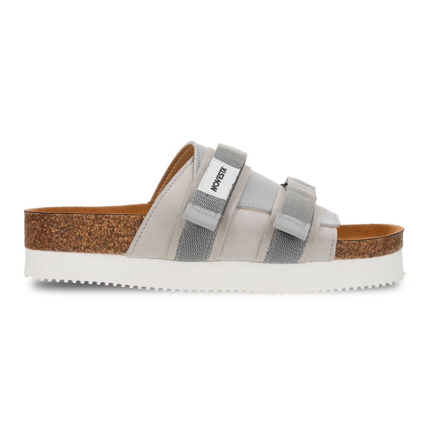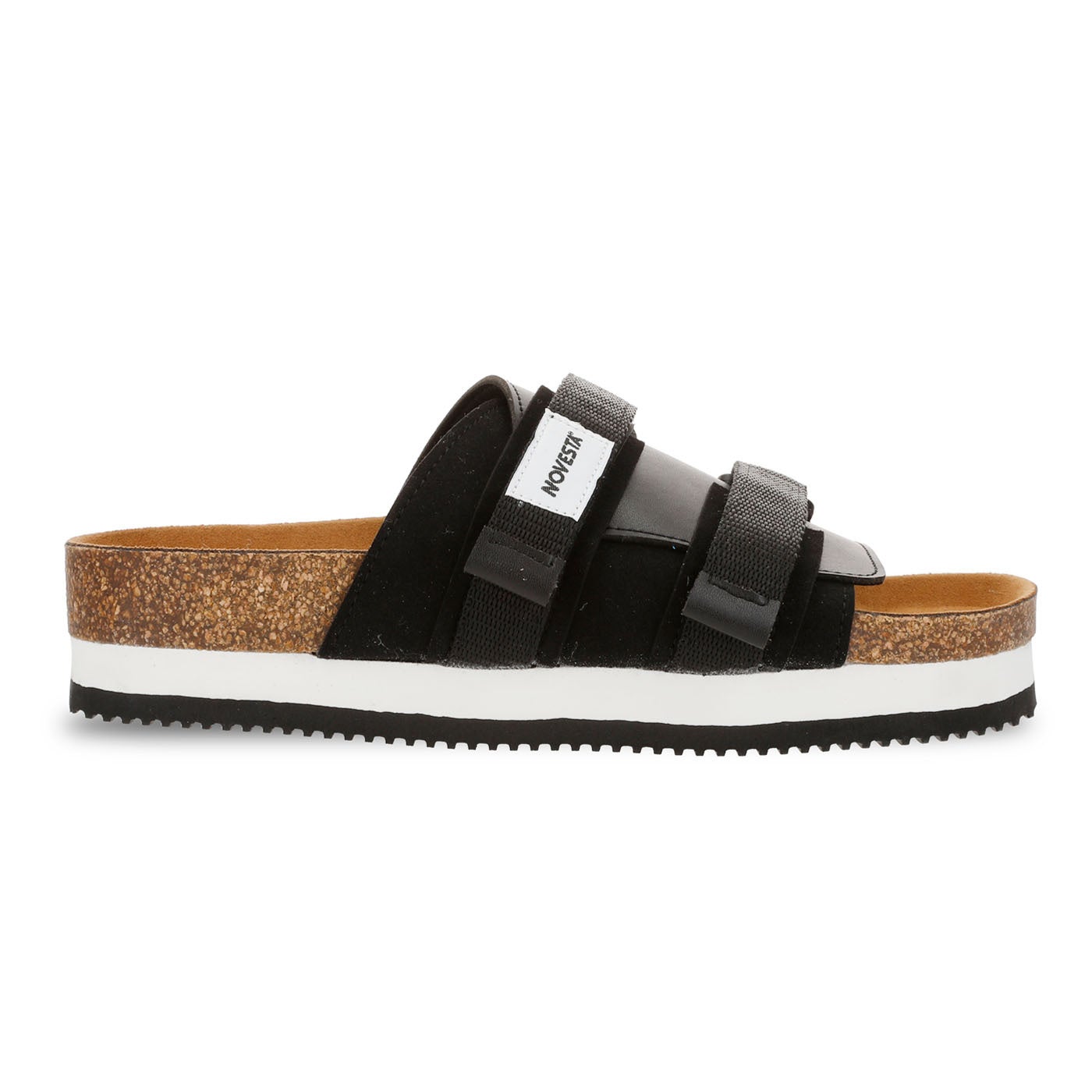 最新の春夏コレクションで発表された、このNOVESTAのサンダルは2型、それぞれ3色(ブラック、グレー、ベージュ)のカラー展開。他のNOVESTAのモデルと同じく足にぴったりとフィットし、足の自然な形状に合わせた、疲れにくい着用感。厚手のラバーソールがアクセント。*PETA認証のヴィーガンモデルです。