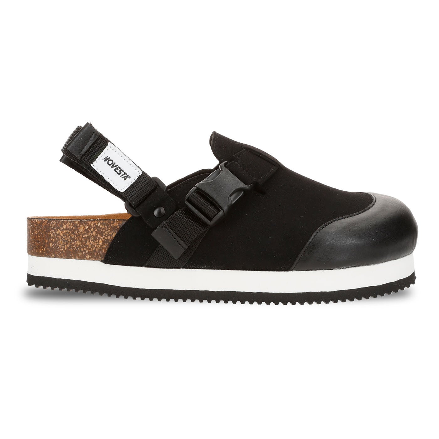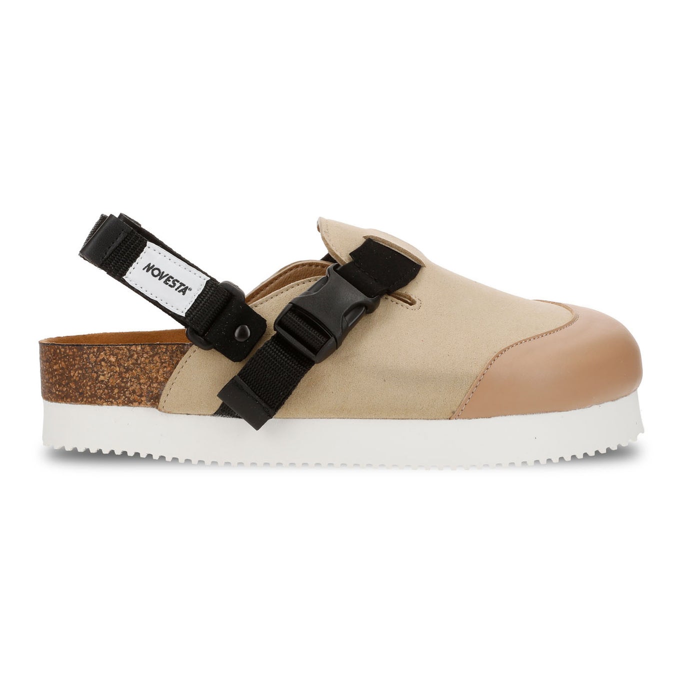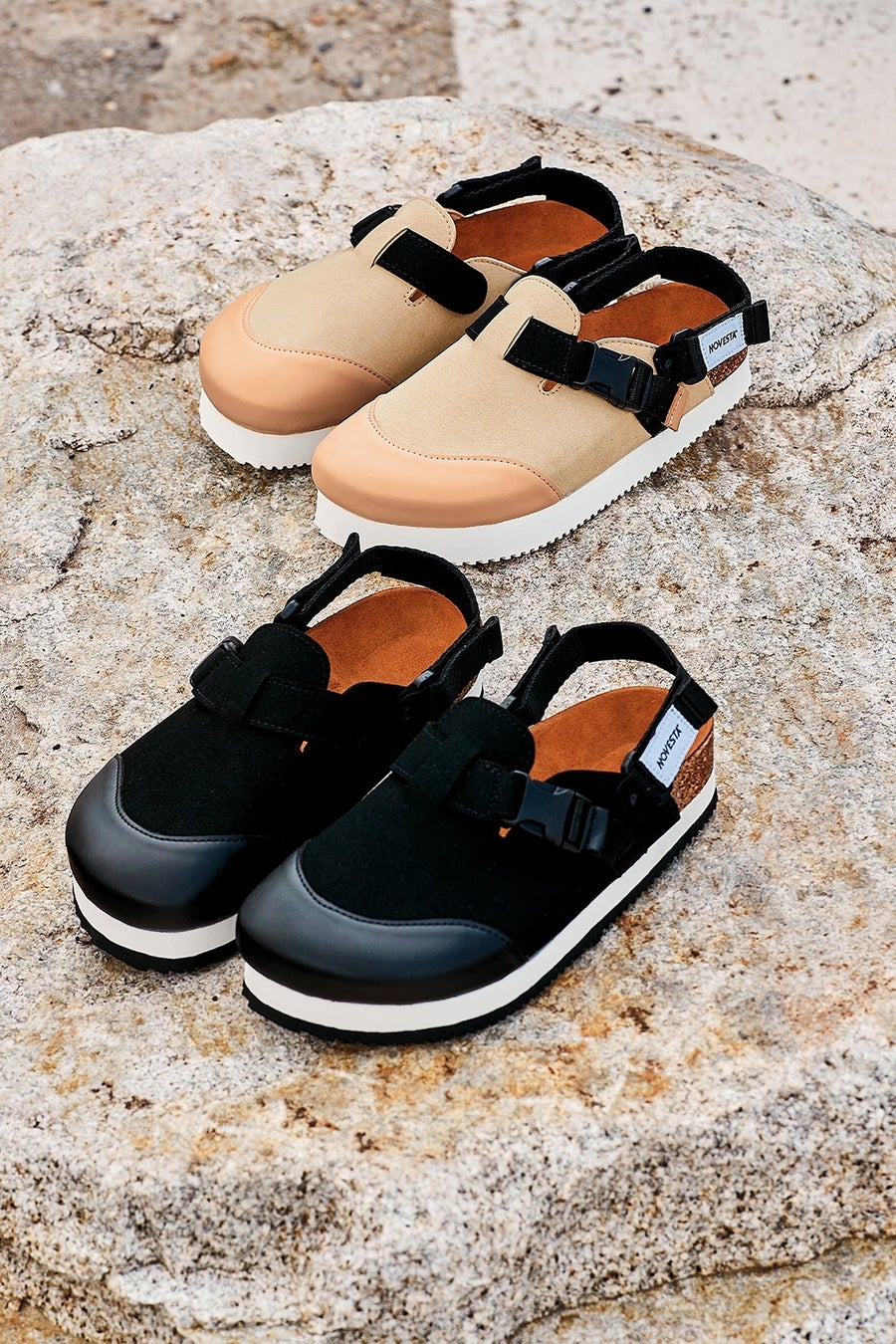 最新の春夏コレクションで発表された、このNOVESTAのサンダルは2型、それぞれ3色(ブラック、グレー、ベージュ)のカラー展開。他のNOVESTAのモデルと同じく足にぴったりとフィットし、足の自然な形状に合わせた、疲れにくい着用感。厚手のラバーソールがアクセント。*PETA認証のヴィーガンモデルです。