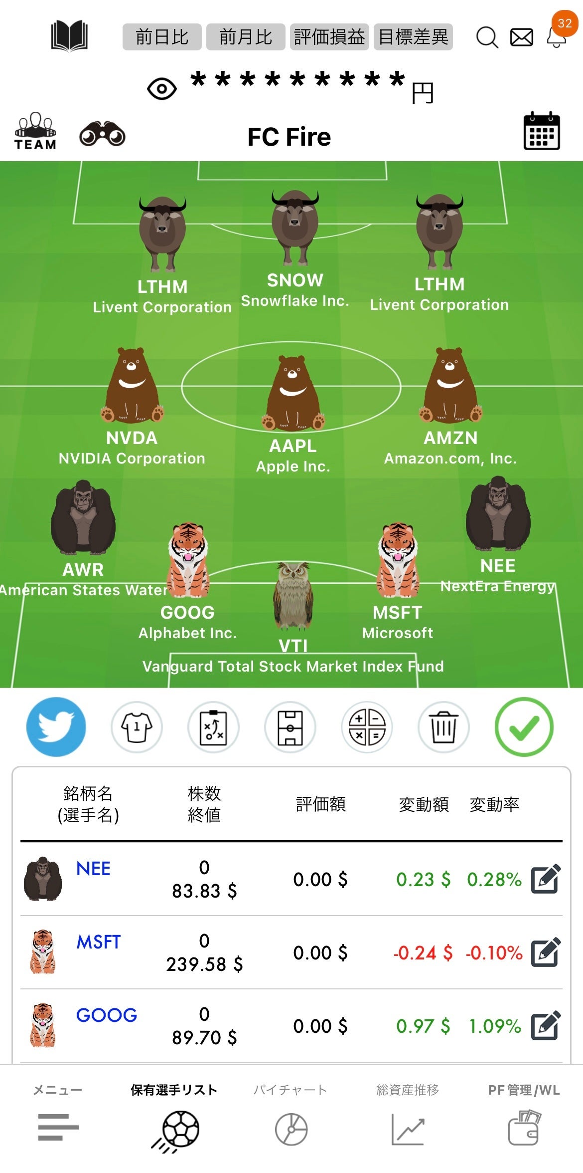 控えのチーム(ポートフォリオ)やベンチメンバーを作成できます。短期と長期でポートフォリオを分けている場合や、複数の証券会社を利用されている場合に複数チームを作りつつ資産管理の実行と計画を考えるヒントに役立ちます。