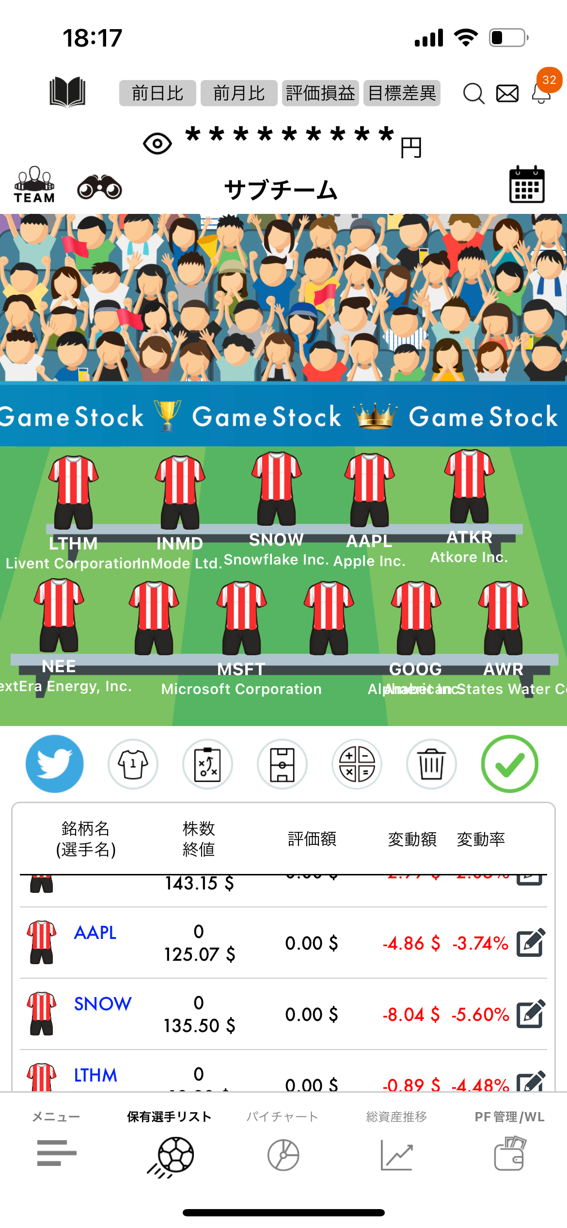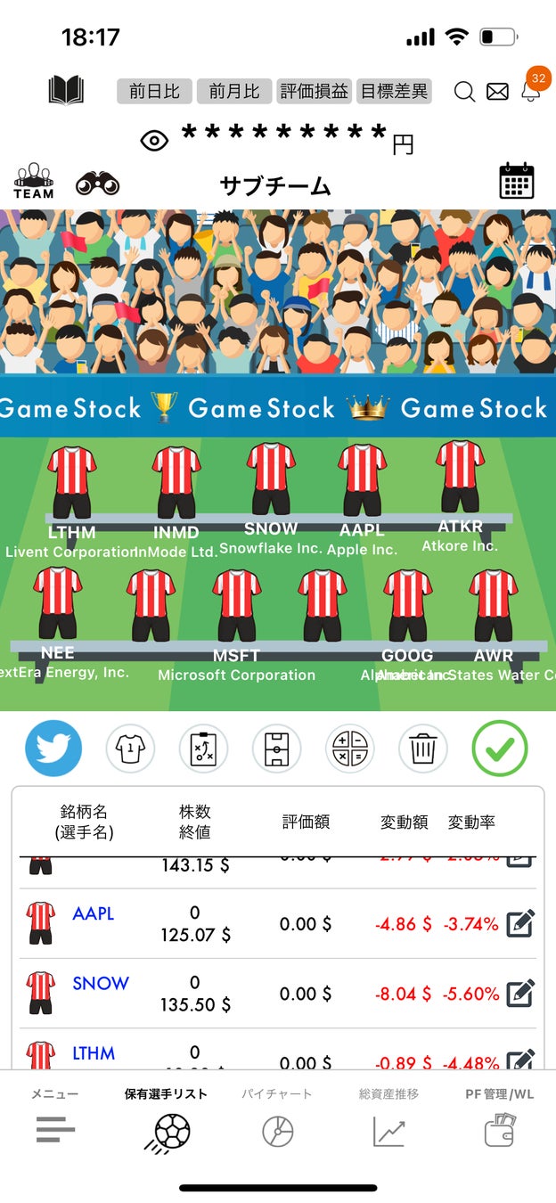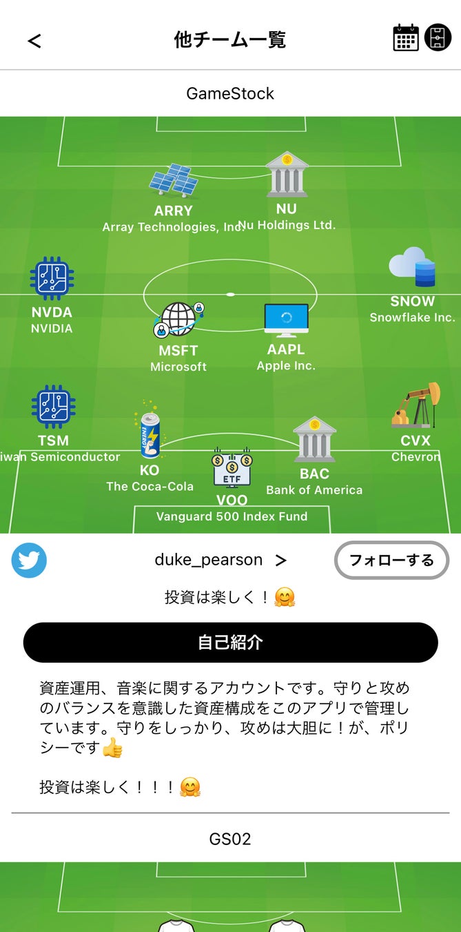 サッカーゲーム型投資管理アプリ、Game Stockが大幅にアップデートされました! カレンダー機能、複数チーム作成に加えて、自分自身や個別銘柄の上下動の激しさレベルをアイコンで判りやすく表現しています。また他チーム簡単参照機能によりさらに仲間と繋がりやすくなりました!
