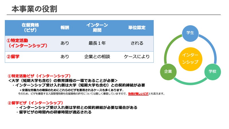 - インターンシップ事業の特徴