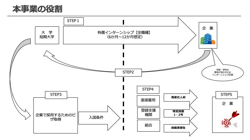 人材不足が加速する中、国内外から多様な人材を受け入れる環境を醸成することが必要不可欠であると考え、今回の「インターンシップ事業」のM&A(事業譲受)に至りました。今後は海外の大学・短期大学との協定に基づくインターンシップ事業を通じて、介護はもちろん、飲食業や製造業、宿泊業、農業など人材不足が懸念される業界において、“本気でグローバル人材との協働を目指す企業”をサポートし、応援していきたいと思っております。