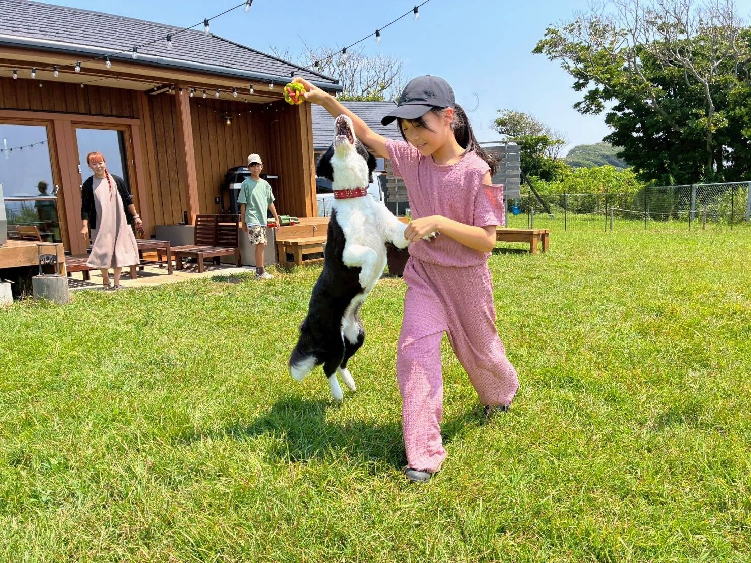 太平洋を一望する400㎡の広大な専用ドッグランで、愛犬がリードなしで自由に走り回れる施設ができました。人も犬もストレスフリーに過ごせる宿泊施設の誕生です。