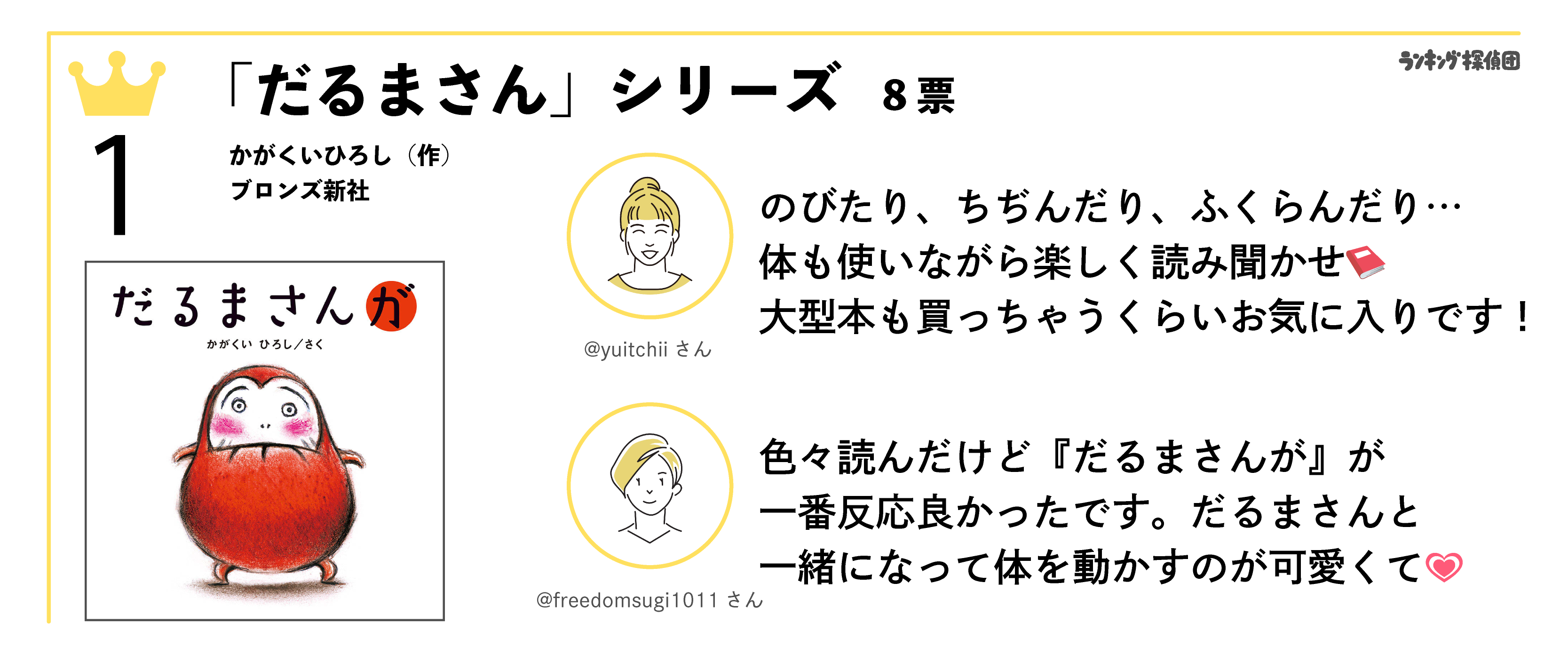 子育て経験者の間でも1位に!根強い「だるまさん」シリーズの人気