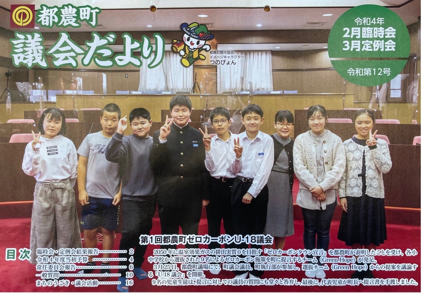 ゼロカーボンタウン宣言後、具体的なアクションのひとつとして、町内の小・中学生選抜チーム「Green Hope」が結成され、15回のディスカションを経て、昨年3月に都農町議会に対しゼロカーボンの施策提言。現在は2期生が「みちくさ市」を中心に、商店街を花と緑で元気にする企画を作成、今年3月のゼロカーボンU-18議会での施策提言に向けて準備中。