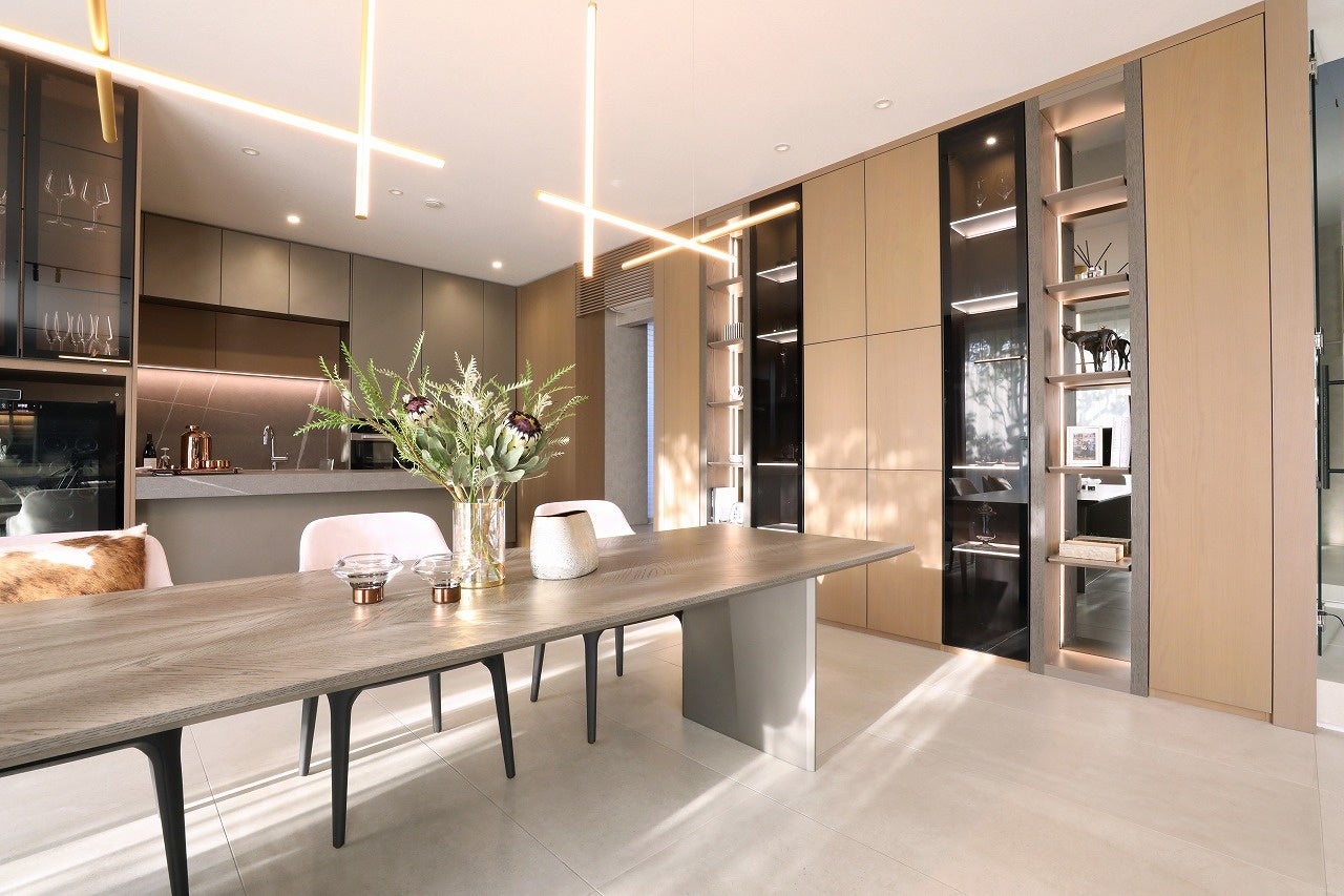 このような計8つのステップを辿りながら選択の幅を提示していきます。木はもちろんガラス、大理石、セラミック、レザーなどの豊富な面材や、色・樹種・照明の有無などの細かなカスタマイズ、1mm単位でのサイズオーダーも可能な体制のもと、さらに“素材、色彩、質感、形、光、動き”という6つの構成要素からディテールのスタイリングを行い、お客様の理想像に完成品を近づけていく仕組みになっています。