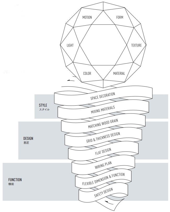 Stage 2 “DESIGN -意匠-” 「フラットデザイン」、「グリッド設計・厚みデザイン」、「木目通し」の3ステップ