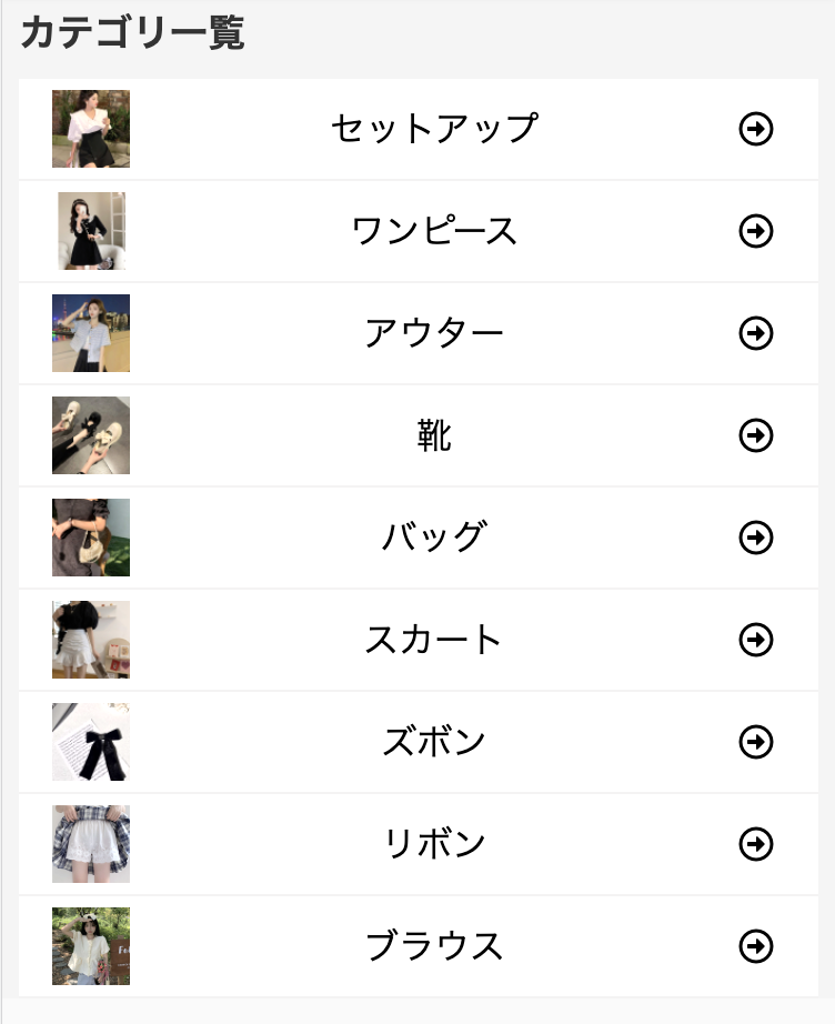 特徴2:様々なカテゴリのフレンチガーリーの服を掲載