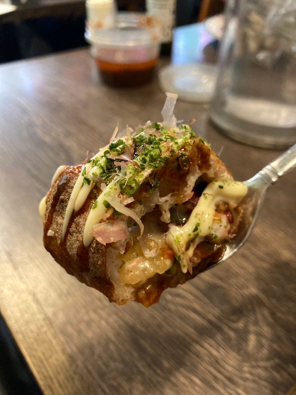 その中でも特に好評だった“たこ焼き”は、オーソドックスなたこ焼きの材料をベースに生地の外側をピッツァ生地、内側のトロっとした質感をモッツァレラチーズで表現。