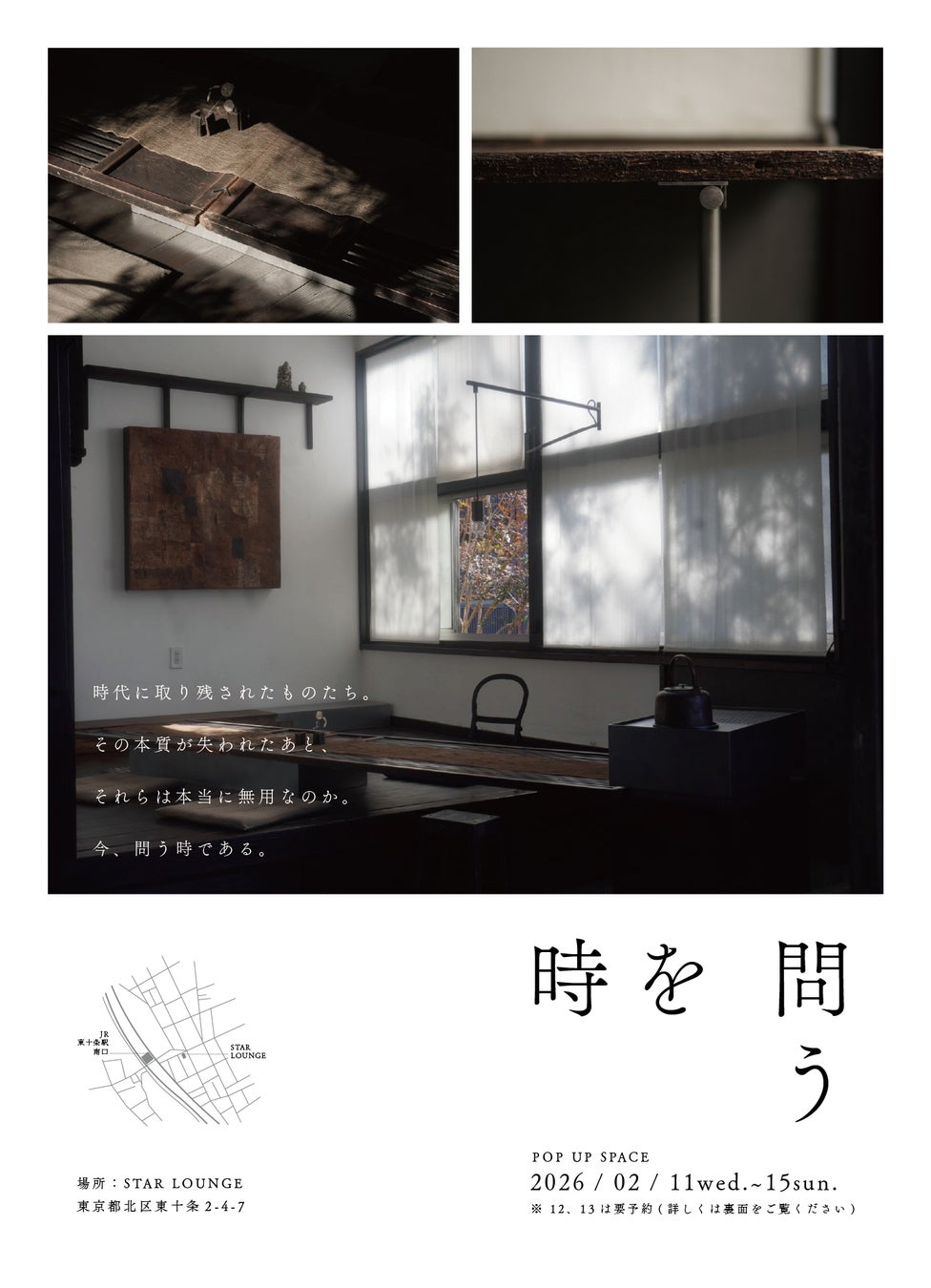 「時を問う」をコンセプトに活動するブランド 〈問時(とうとき)〉 は、2026年2月11日(水)〜2月15日(日)、東京・東十条にてポップアップイベントを開催します。