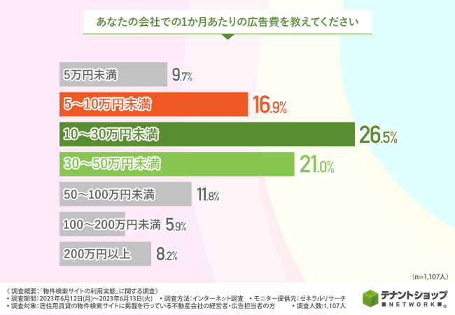 不動産会社の広告費は『10~30万円未満』が最多