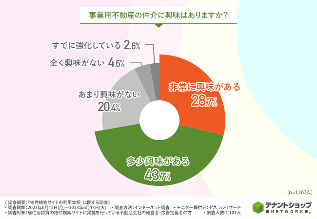 事業用不動産仲介に興味がある企業は7割以上