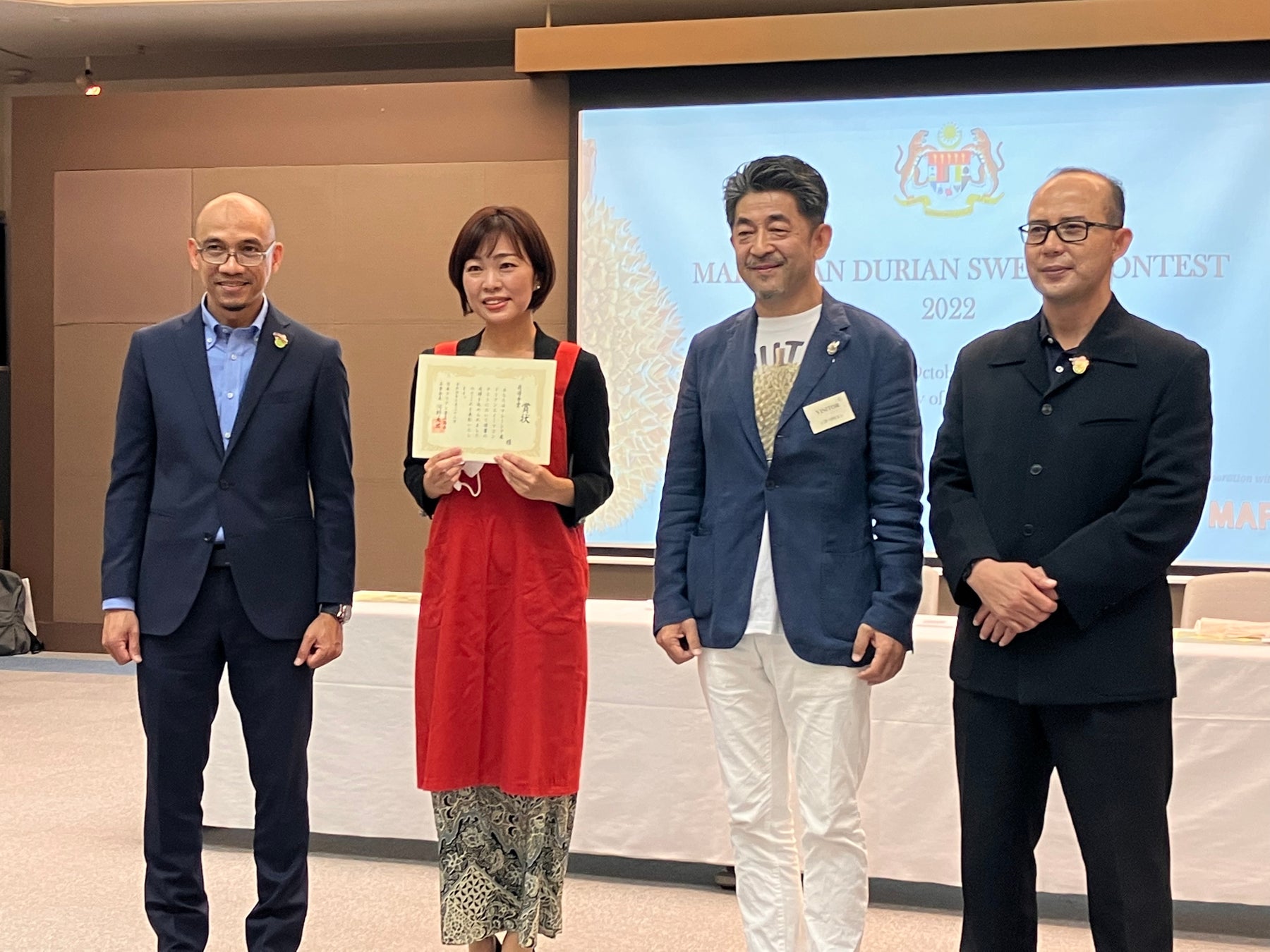 最優秀賞受賞者には在日本マレーシア大使および日本ドリアン普及協会から賞状と、副賞としてJTB旅行券10万円分が贈呈されました。