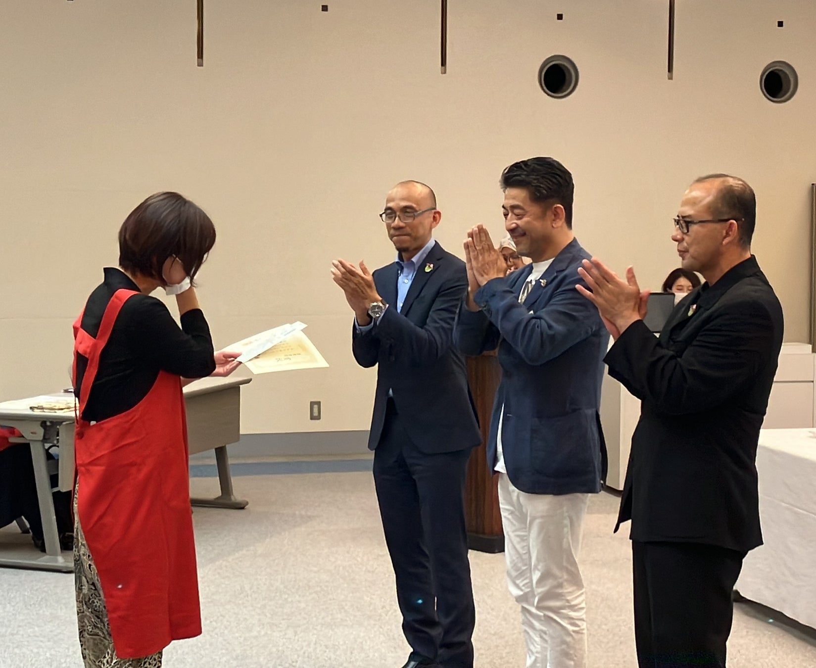 河野太郎名誉会長は都合により欠席となってしまいましたが、前日に試食をしていただき、審査結果をお送りいただきました。