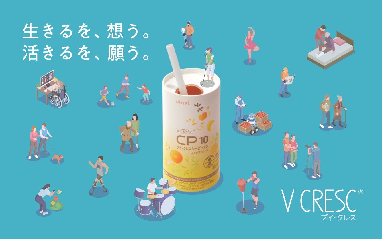 栄養補助食品の領域において、「ブイ・クレスCP10(シーピーテン)ミックスフルーツ」は「褥瘡を有する方の食事療法として使用できる食品」として個別評価型病者用食品の表示許可を受けており、栄養療法食品の認知度をけん引しています。嚥下補助食品の領域においては、ニュートリーは自社工場で、飲み込みが難しい方のために使用されるとろみ材・ゼリー化材を製造しており、特別用途食品「えん下困難者用食品」の最多取得企業です。流動食領域においては、経口・経管のいずれからも栄養補給が可能な、日本初の“デュアルユースの紙製容器”を開発するなど経管栄養管理におけるさまざまな課題解決に向けた製品を開発しています。さらに、2022年12月、テルモ株式会社より栄養食品事業を譲受し、製品ラインナップを拡充しています。