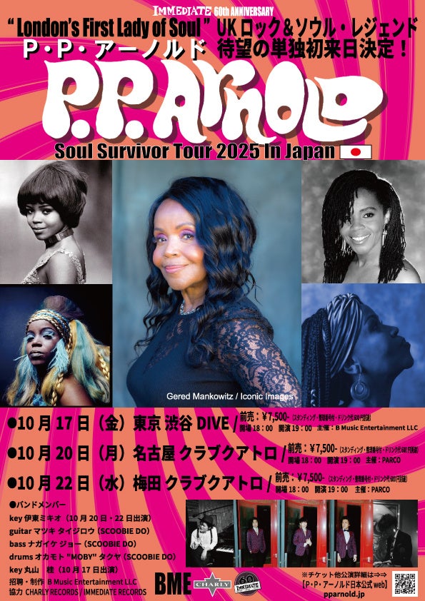 ”London's First Lady of Soul!”、ノーザン・ソウルのディーバでUKロック&ソウル・レジェンド:P・P・アーノルド(P.P. Arnold)、彼女がデビューした伝説のレーベル:イミディエイト・レコード60周年を記念し、この秋、待望の単独初来日公演決定しました!