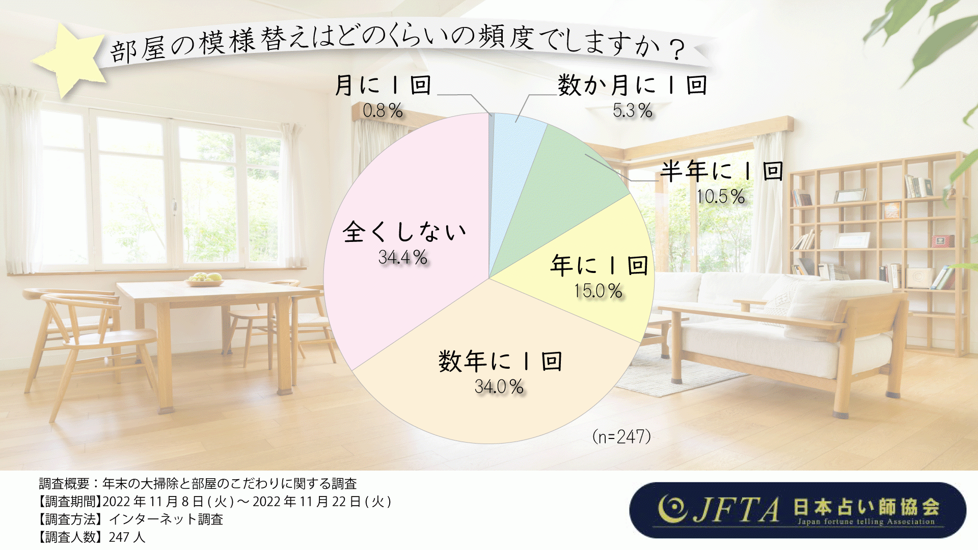 また、模様替えをする人で一番多かった頻度は、「数年に1回」でした。子供の成長や生活スタイルの変化など、必要に応じて模様替えをする人が多いようです。