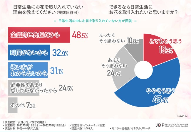 そこで今回、フラワーアレンジメントデザイナー認定資格(https://www.designshikaku.net/syumi/flower/)を取り仕切る「日本デザインプランナー協会」は、20代〜40代の女性を対象に「女性と花」に関する調査を実施しました。