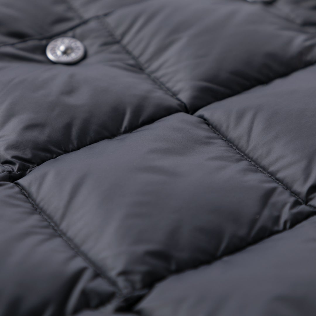 素材はダウン90%に対しフェザー10%。保温性の高いダウンにフェザーを10%配合することで、暖かさをキープしながら型崩れしにくいダウンベストに仕上げました。