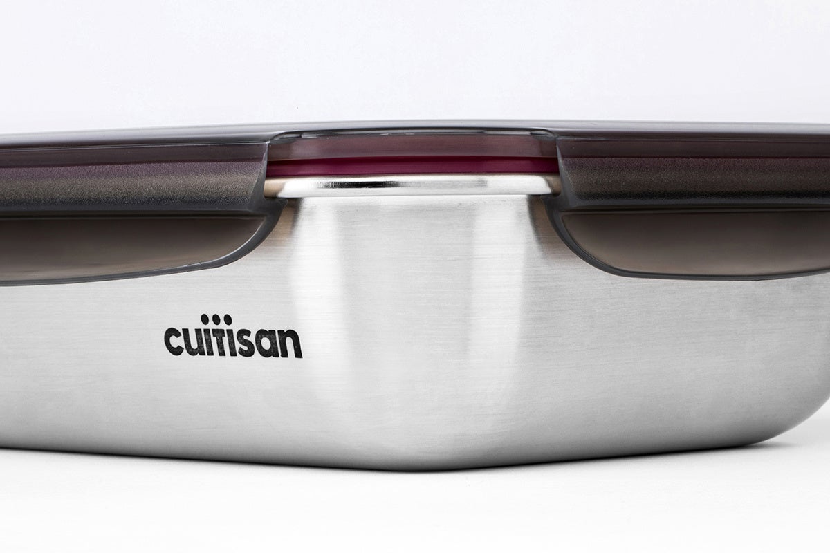 Cuitisanの最大の特徴は、なんと言ってもステンレス製にもかかわらず電子レンジで使用可能ということです。従来のステンレスは電子レンジで使えないことが欠点の1つでありました。しかし、特殊ステンレスを使用することで、世界初、そして唯一の電子レンジでの使用ができるステンレス調理容器として開発されました。電子レンジ以外にも、オーブンやトースターなどでの使用も可能です!