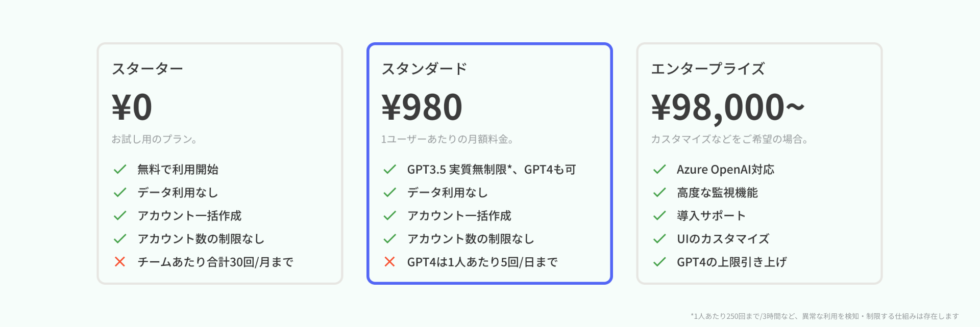 2.スタータープラン、ChatGPTの利用回数の上限を3倍まで引き上げ