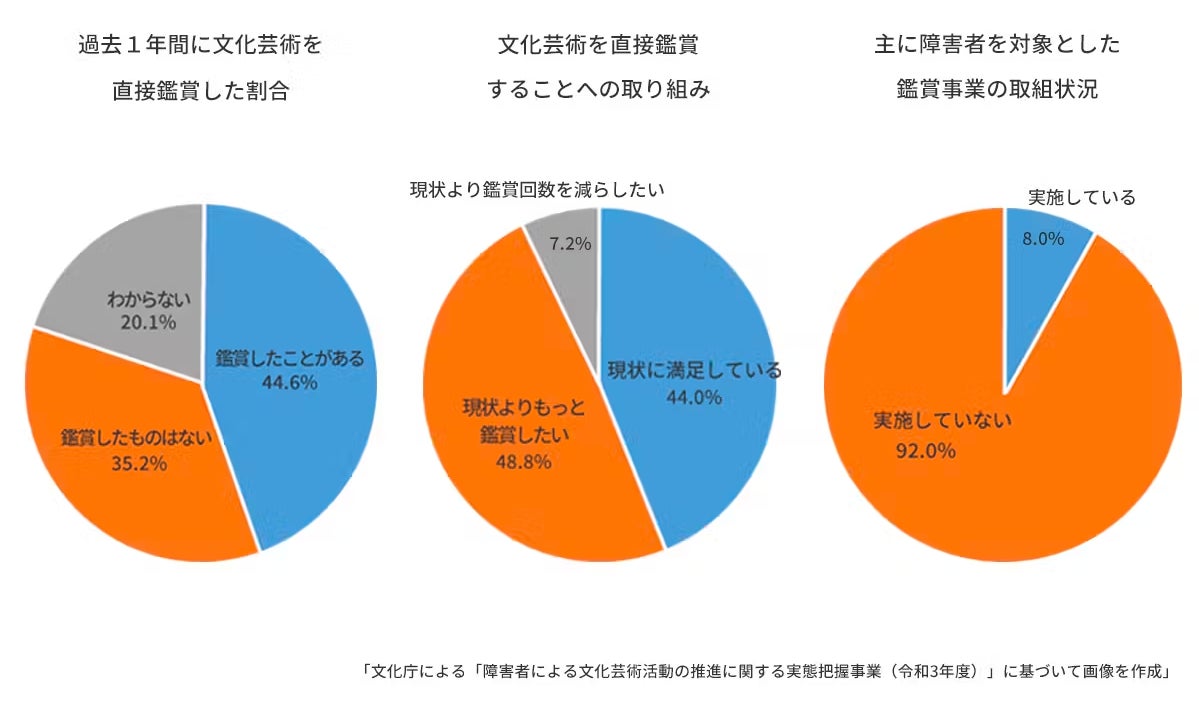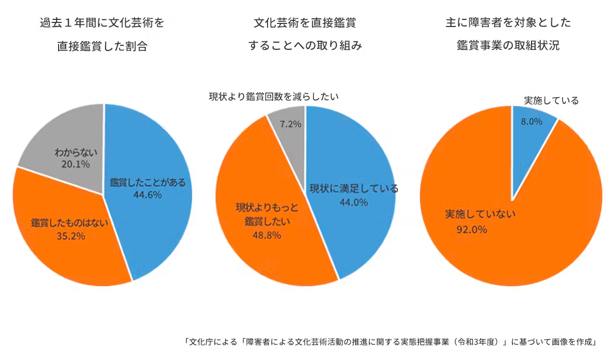 実態把握調査が明らかにしているように、文化芸術を鑑賞したいと願っている障がい者に対して、多くの鑑賞事業は、彼らが鑑賞できる環境を提供できていません。文化芸術を提供する側がアクセシビリティを整備できていないことによる社会的なバリアによって、障がい当事者が文化芸術を楽しむことを諦めている状況にあります。文化芸術は誰しもに開かれたものであるべきです。