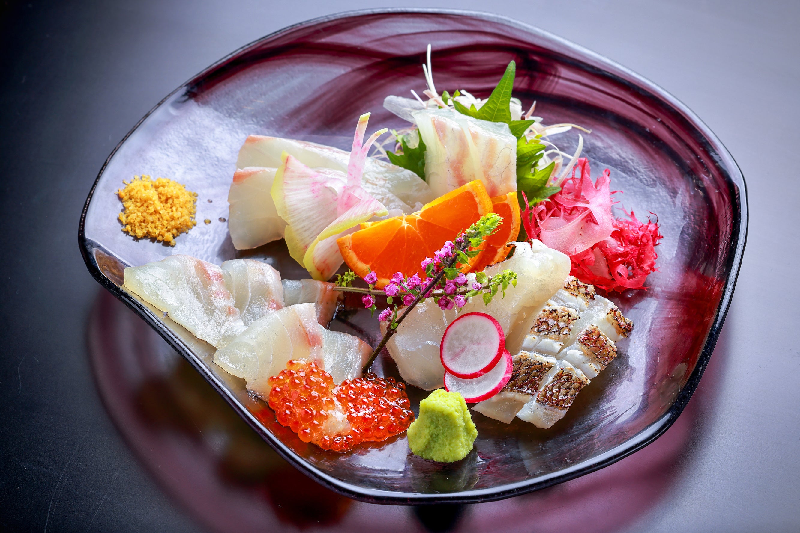 愛媛県産のブランド鯛を厳選し、期間限定で提供される「厳選鯛3種食べ比べ盛り」となります。このメニューでは、普段味わえない、愛媛のブランド鯛3種類を一度に楽しむことができます。そのほかにも、瀬戸内の旨みが凝縮された焼き鯛、そして鯛の風味がたっぷりと広がる煮付け、愛媛の農家さんより直送頂いている新鮮な野菜とのコラボレーションにより、さらに鯛の旨味を引き出し、鯛料理の世界を広げて頂ければと思います。それぞれの料理が、愛媛県の豊かな食材と職人の技で作り上げられています。是非ご賞味ください。
