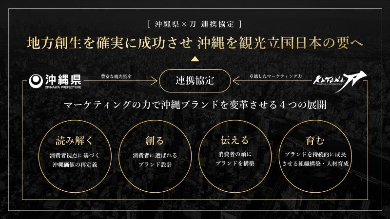 沖縄県と刀社は、互いの目指すところと考えに共鳴し、この度連携協定締結の運びとなりました。共に全力で、沖縄のブランド強化による変革で観光立国日本の要となることを目指してまいります。