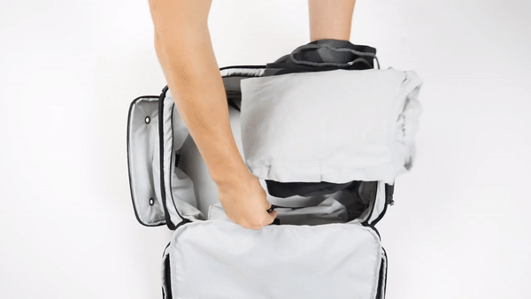 キャリーケースにも対応。しっかり固定でき、空港での移動もラクラク